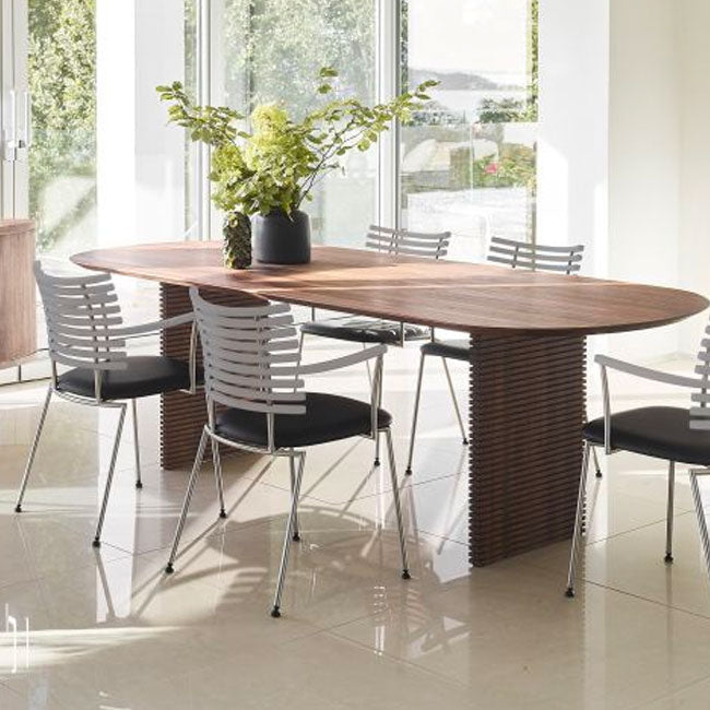 RO spisebordet er et spisebord i massivt træ, der fremstår med en slank og let profil, men stadig rummer robusthed og funktionalitet. Bordet fås i forskellige størrelser og træsorter, hvilket gør det til et alsidigt valg for både små og store hjem.
