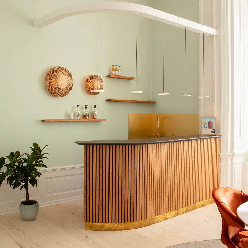 Asteria micro fra Umage har et simpelt og stilrent udseende, der er født i krydsfeltet mellem design, teknologi og håndværk. Med dens specialdesignede LED-panel og det minimalistiske udtryk er det en lampe, der aldrig vil gå af mode. LED-panelet har en hvid diffusor, der sikrer en blød belysning i rummet og lampens tynde ledning understreger designets diskrete minimalisme.
