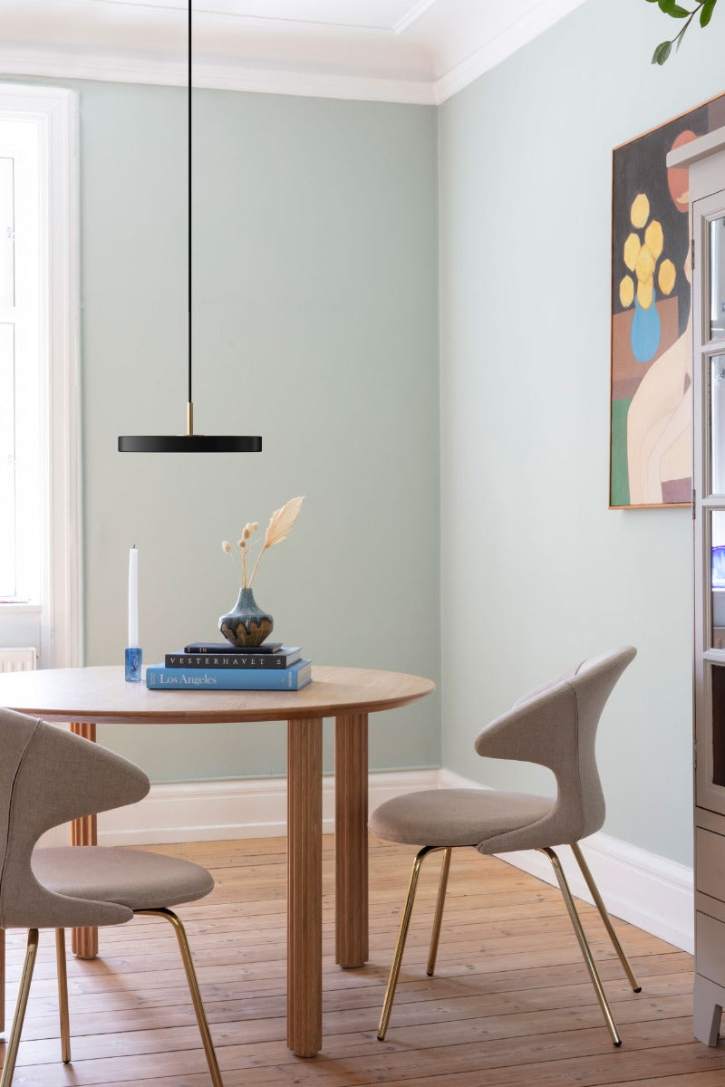 Smuk pendel fra danske Umage. Lampen har et enkelt, elegant og eksklusivt udtryk. Det skønne indbyggede LED lys giver sammen med det minimalistiske formsprog lampen et arkitektonisk og kunstnerisk touch. Med lampens specialdesignede LED-panel og det minimalistiske udtryk er Asteria en lampe der aldrig kommer til at gå af mode. Lampen har en hvid difussor der sikrer en blød belysning i rummet og der er derudover mulighed for at dæmpe LED-panelet ved køb af en ekstern lysdæmper.
