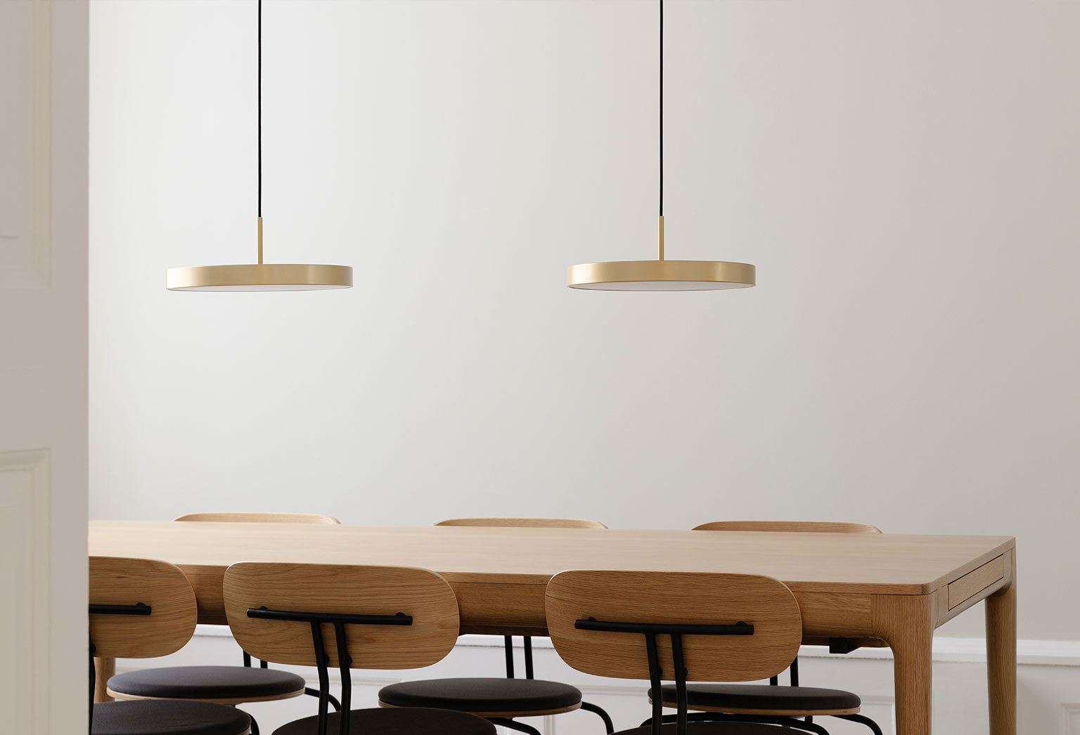 Asteria pendlen har et simpelt og rent udseende, der er født i krydsningsfeltet mellem design, teknologi og håndværk. Med dens specialdesignede LED-panel og det minimalistiske udtryk er det en lampe der aldrig vil gå af mode. LED-panelet kan dæmpes med en ekstern lysdæmper og har en hvid diffusor, der sikrer en blød belysning i rummet.