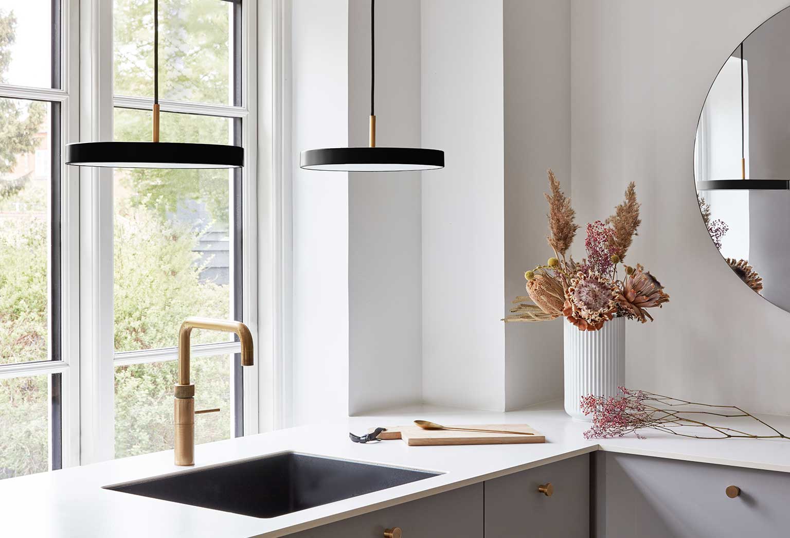 Asteria Plus tager den klassiske Asteria-pendel til nye højder med dens indbyggede lysdæmper og mulighed for montering i lysskinner, hvilket gør den til en ideel belysningsløsning for kontorer, private spisestuer eller køkkenområder.