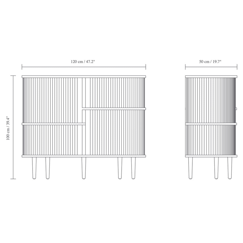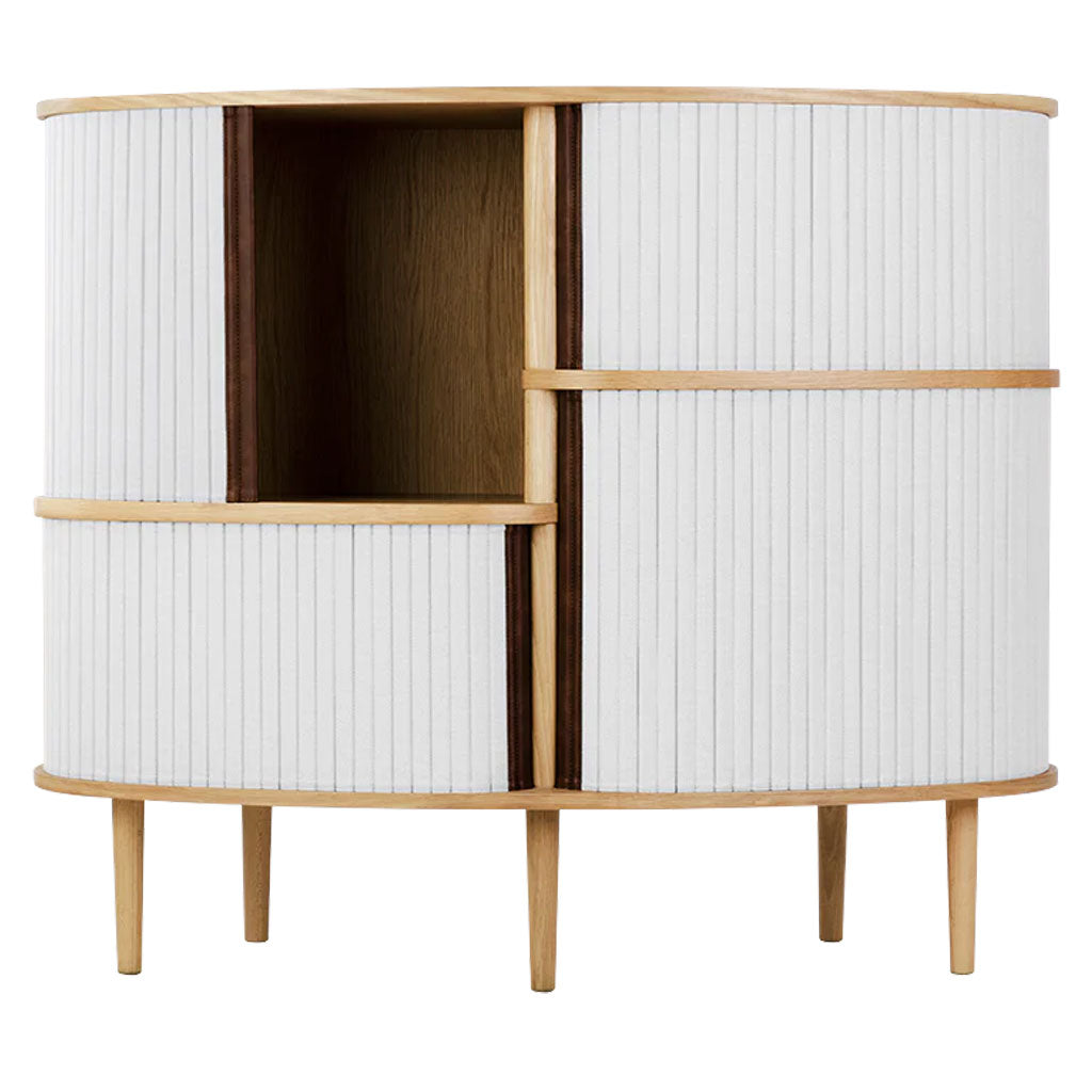 Audacious Highboard er et skab, der er ideelt til stuen, eller andre steder hvor du har brug for opbevaring. Udtrykket er nordisk, men alligevel dristigt, og de glidende jalousidøre i tekstil skaber en nostalgisk og samtidig moderne reference til interiøret.