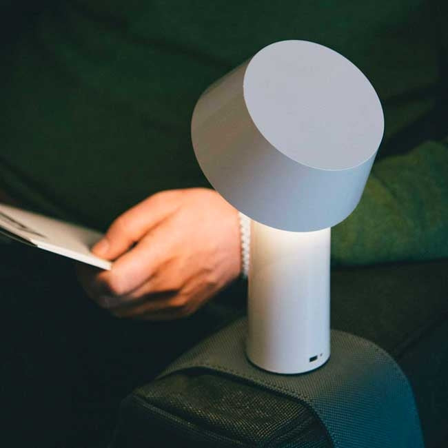 Bordlampen har et genopladeligt batteri der holder strøm i 5 timer ved maks belastning. Opladningstiden er ca. 10 timer.