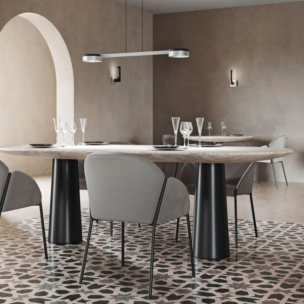 BLADE S2 SLIM pendel er karakteriseret ved de helt rene, symmetriske linjer. Pendlen har to spots, der kan vippe, så du let peger lyset i en ønsket retning. Pendlen er perfekt over spisebordet eller køkkenøen. Lampen kan oplyse et bord på op til 4 meter. Lampen tændes og slukkes med den berøringsfrie sensor, som også bruges til at kontrollere lysets styrke. Lampen har ligeledes indbygget SMART TUNE som gør det muligt at styre lyset via Casambi app. BLADE S2 SLIM er den del af Blade produkt familien.