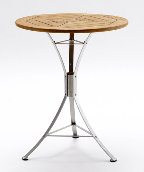 Cappuccino sammenklappelig havebord i teak og rustfrit stål. Designet bringer tankerne hen på et skibsdæk og det maritime miljø på havnen.