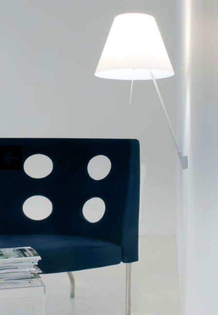 Costanza lampen fra Luceplan er her i væglampe udgaven der ligeledes fås i forskellige lampeskærme farver. Costanza væglampen har indbygget lysdæmper og afbryder der er berøringsfølsom i form af en sensor-pind.