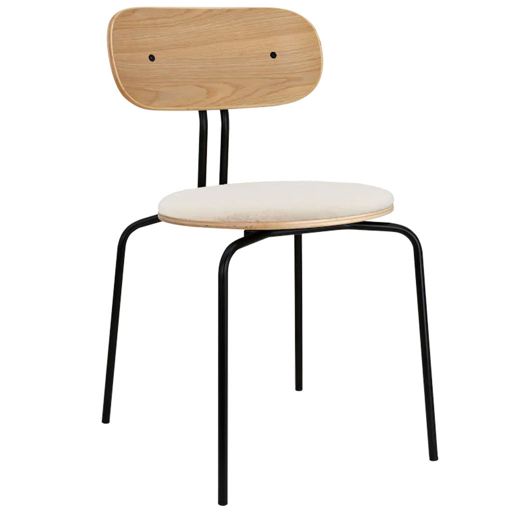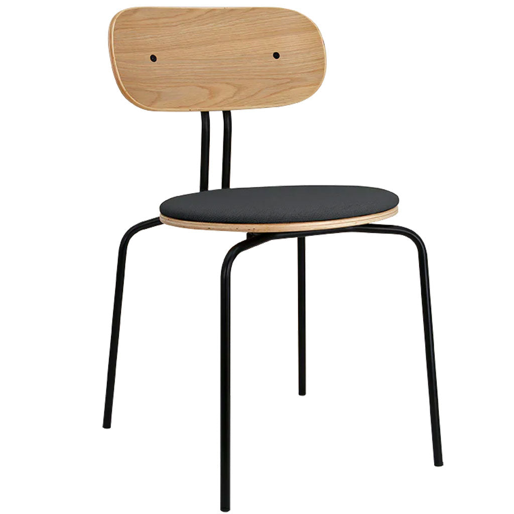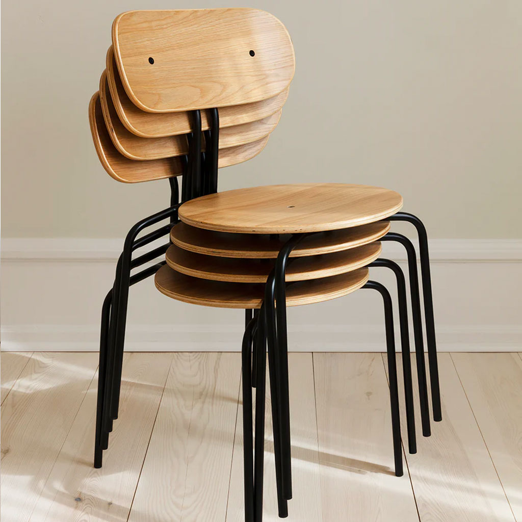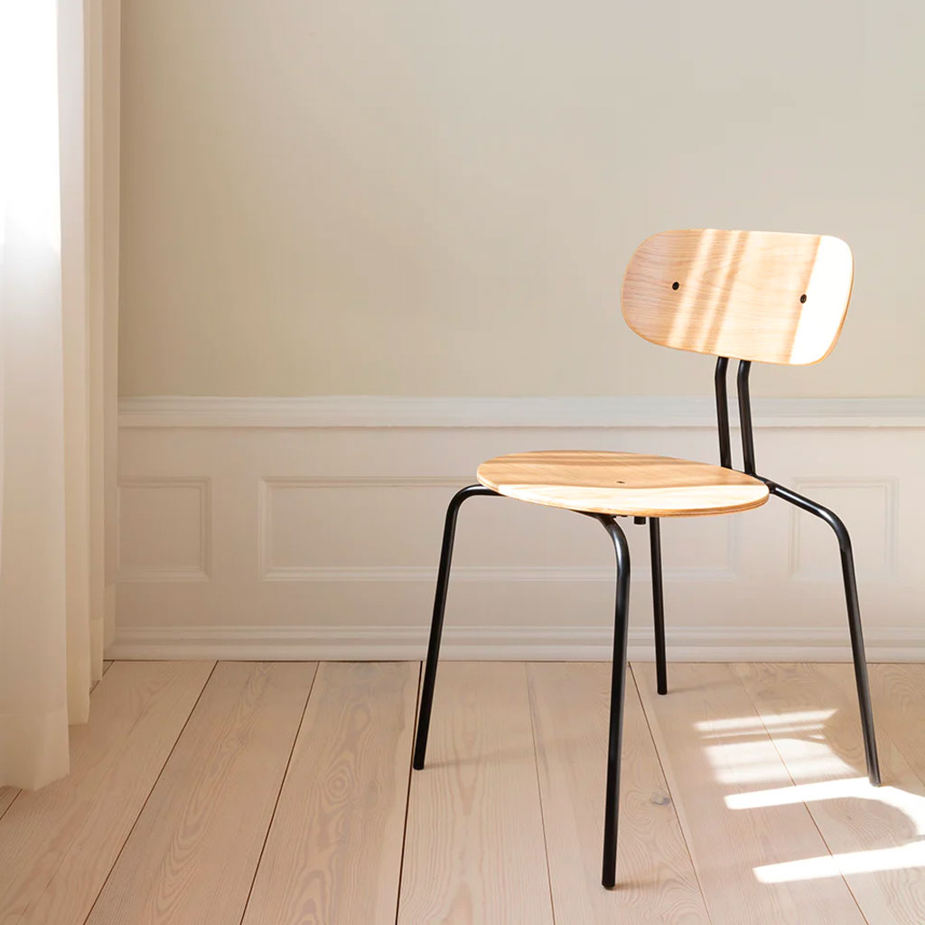 Curious er en stabelbar stol med et let, minimalistisk og elegant udtryk. Curious er fremstillet af egetræsfiner med ben i sort.