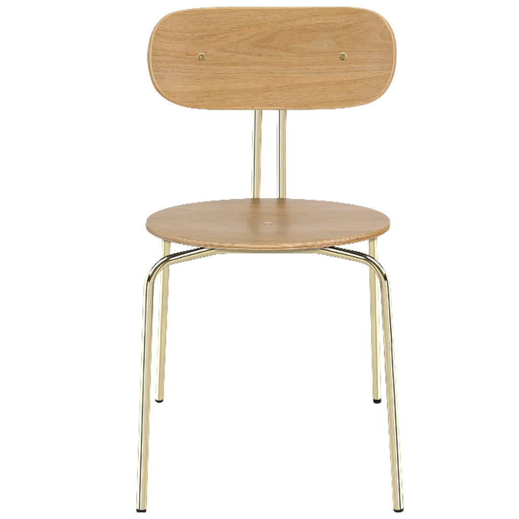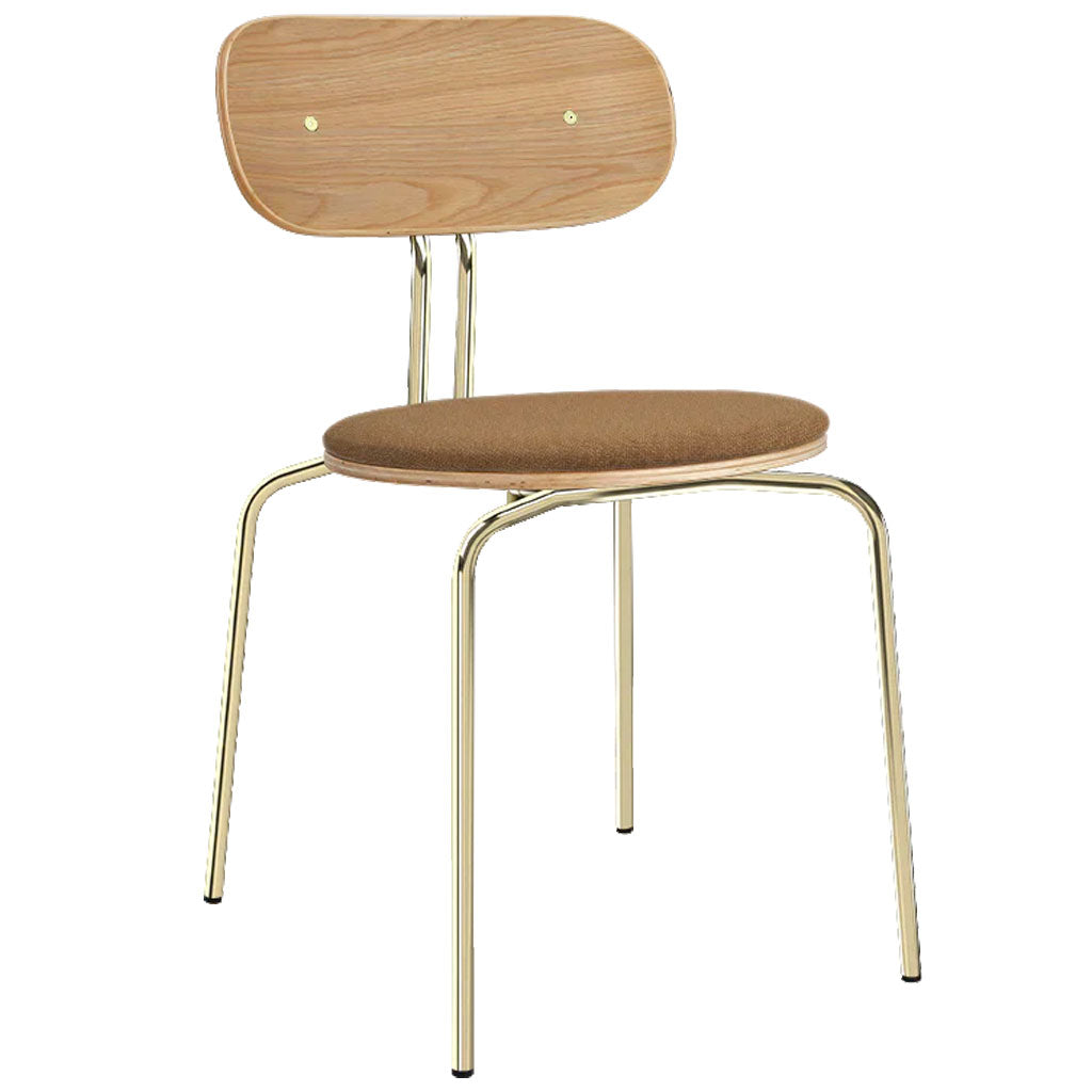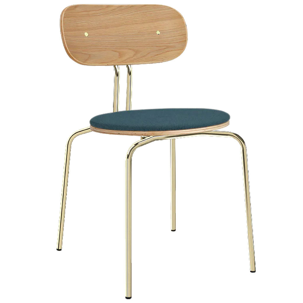 Curious er en stabelbar stol med et let, minimalistisk og elegant udtryk. Curious er fremstillet af egetræsfiner med ben i messing.