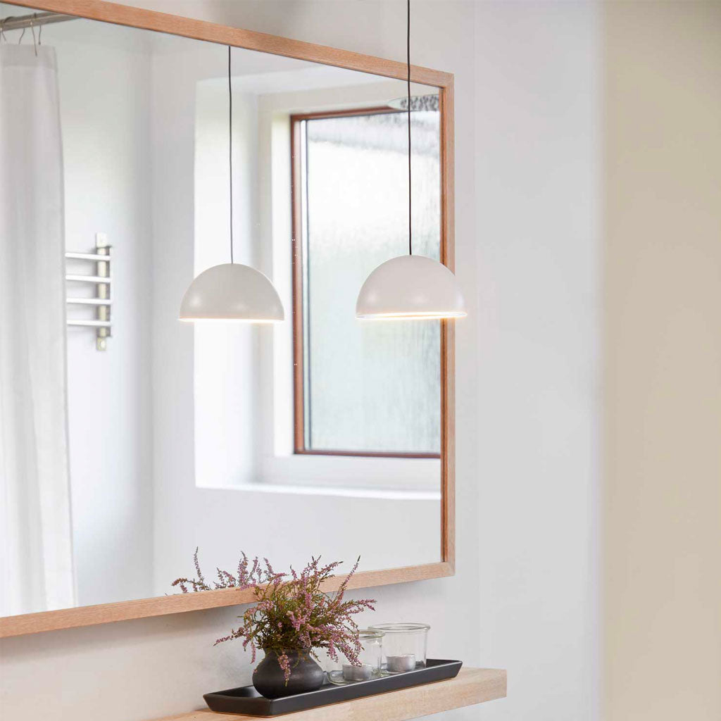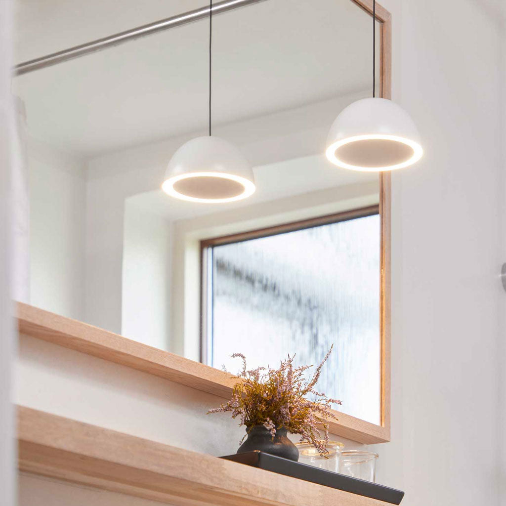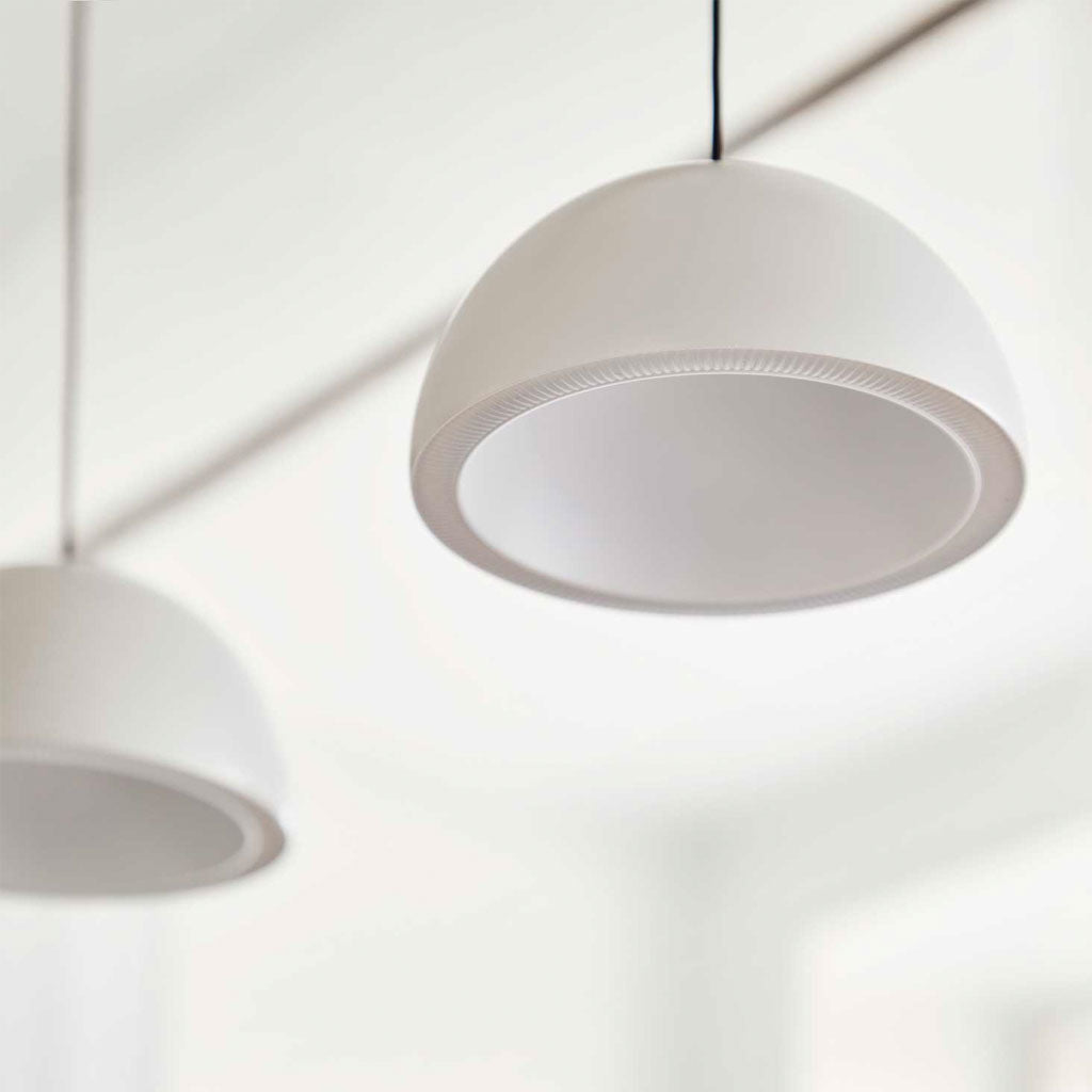Curve Hvid tilbyder en moderne belysning, der passer perfekt ind i ethvert rum, hvor den placeres. Den halvkugle formet pendel er fremstillet i aluminium, og dens hvide finish skaber et rent og minimalistisk udseende, hvilket gør den til en ideel løsning for moderne indretninger. Den integrerede LED-belysning, der er placeret rundt i kanten nederst, giver et jævnt og behageligt lys over bordet, hvilket gør Curve til et fremragende valg til både hjemmet og kontoret. Kombinationen af det tidløse design, og den neutrale farve gør denne pendel velegnet til forskellige indretningsstile.