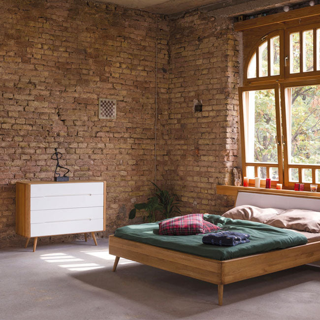 Det er fremstillet i massivt eg med hvid eller antracit malet skuffer.