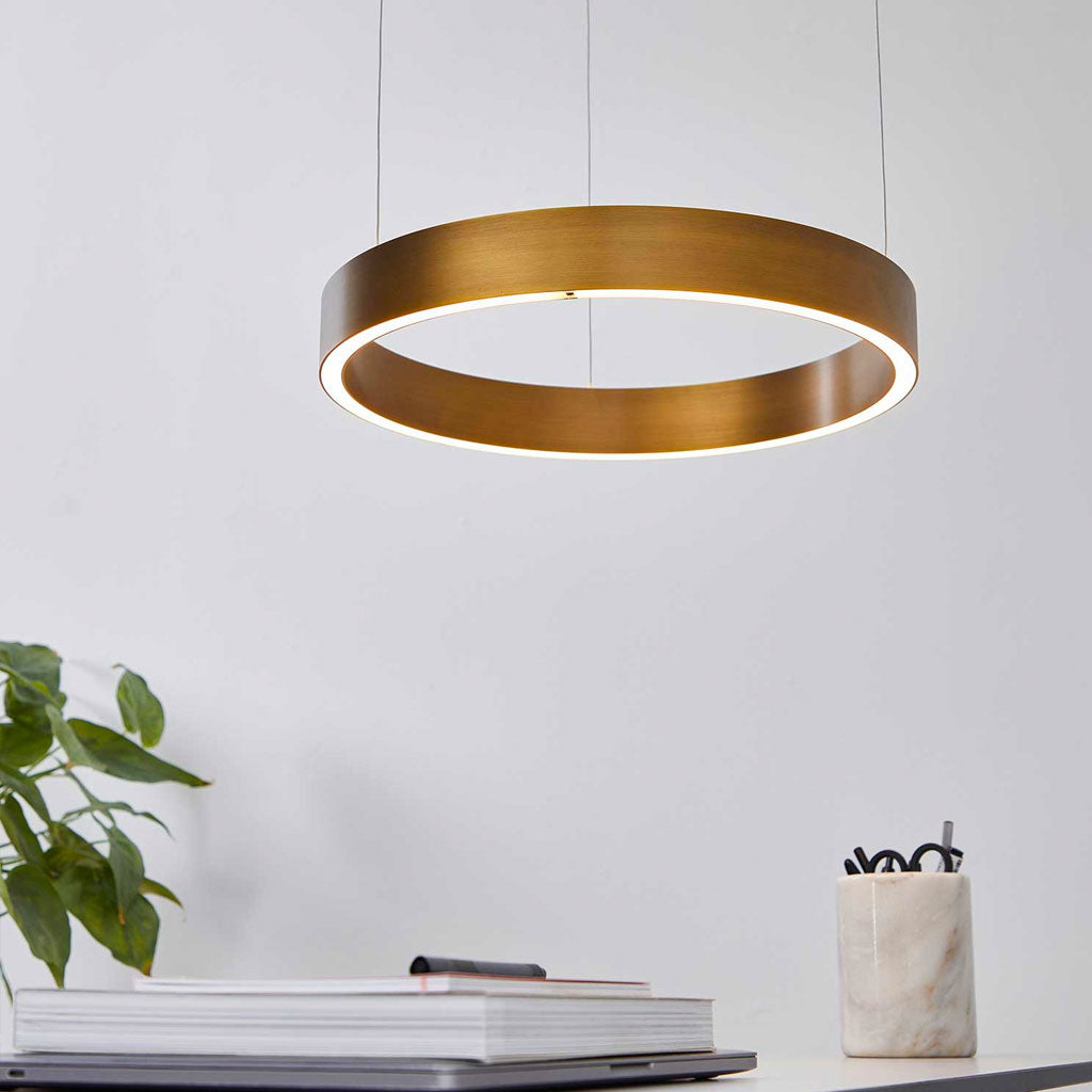 EOS 360 Small pendlen i mat messing kombinerer tidløst design med avanceret funktionalitet, hvilket gør den til et fremragende valg til forskellige rum og behov. Den runde pendel, der er udstyret med et praktisk roll-up system, kan justeres i højden fra 70 cm til 135 cm, hvilket giver fleksibel anvendelse i alt fra stuen til spisestuen. Med en diameter på 40 cm og en slank profil på kun 5,05 cm tilfører pendlen et raffineret og luksuriøst udtryk til indretningen. Den fås også i en større model med Ø 58 cm for en mere markant visuel effekt.