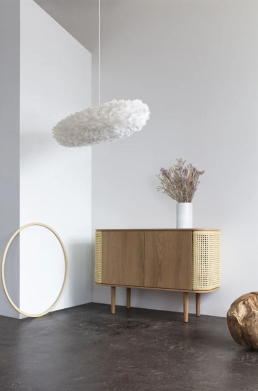 Smuk lampeskærm fra Umage. Esther er designet som en let og elegant sky, som du både kan bruge til at sammensætte din egen loftlampe, bordlampe og gulvlampe - mulighederne er mange.