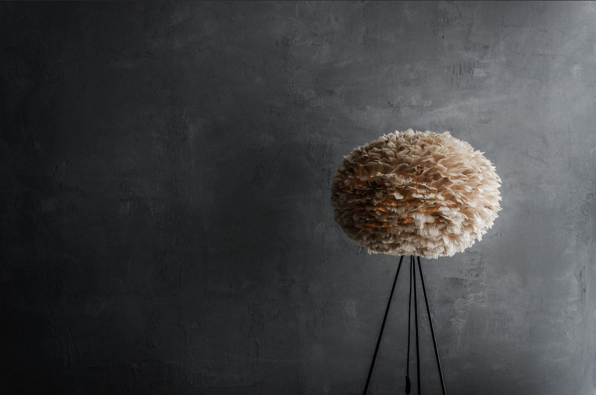 EOS er designet af Søren Ravn Christensen og giver et forfinet og feminint udtryk. Lampen består af hundredvis af påsatte gåsefjer, og giver et blødt og fyldigt lys. Lampen er overraskende nem at rengøre - du lader bare hårtørreren blæse støvet af fjerene. Skærmen kan bruges både til ophæng, bordstander og gulvstander.