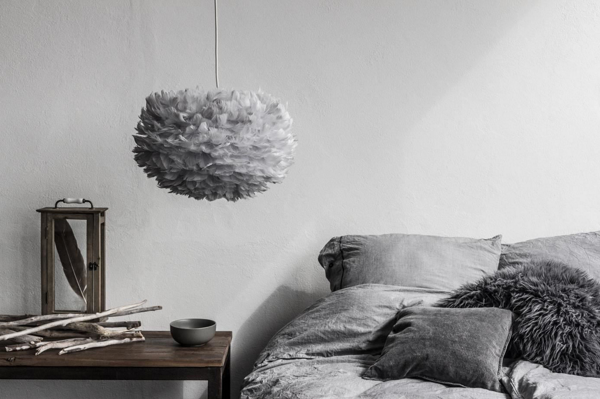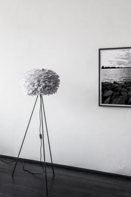 EOS er designet af Søren Ravn Christensen og giver et forfinet og feminint udtryk. Lampen består af hundredvis af påsatte gåsefjer, og giver et blødt og fyldigt lys. Lampen er overraskende nem at rengøre - du lader bare hårtørreren blæse støvet af fjerene. Skærmen kan bruges både til ophæng, bordstander og gulvstander.