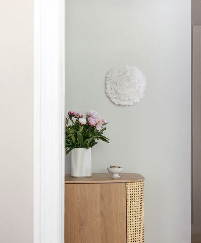EOS er designet af Søren Ravn Christensen og giver et forfinet og feminint udtryk. Lampen består af hundredvis af påsatte gåsefjer, og giver et blødt og fyldigt lys.
