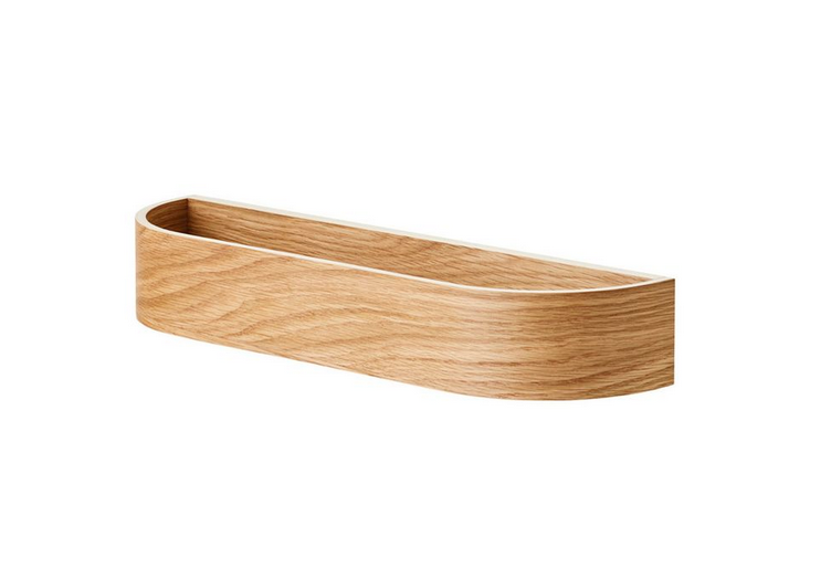 Hylden er fremstillet af egetræsfiner og kommer i to finishes. Det vægmonterede design giver et naturligt touch til væggene og får hylden til at fungere som et praktisk sted til at sætte rod i gangen.