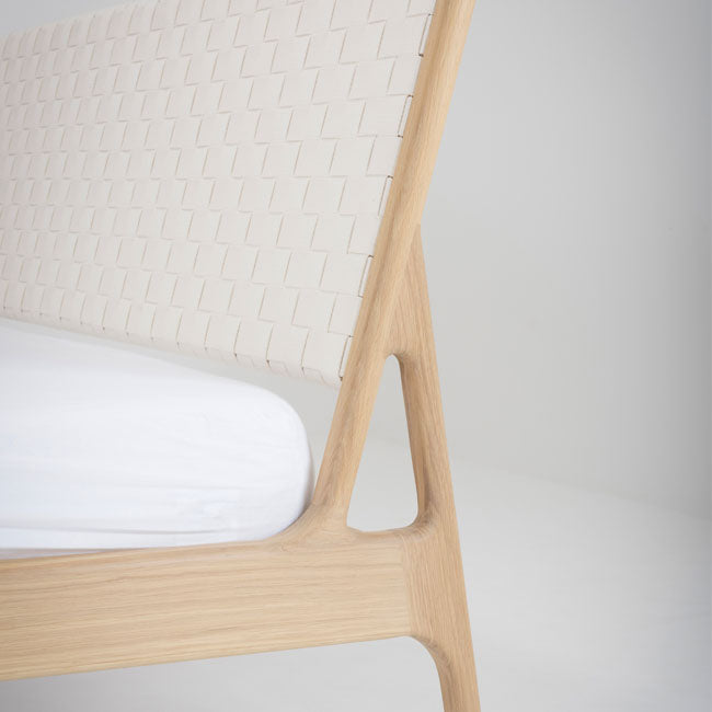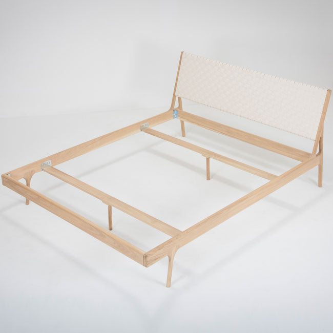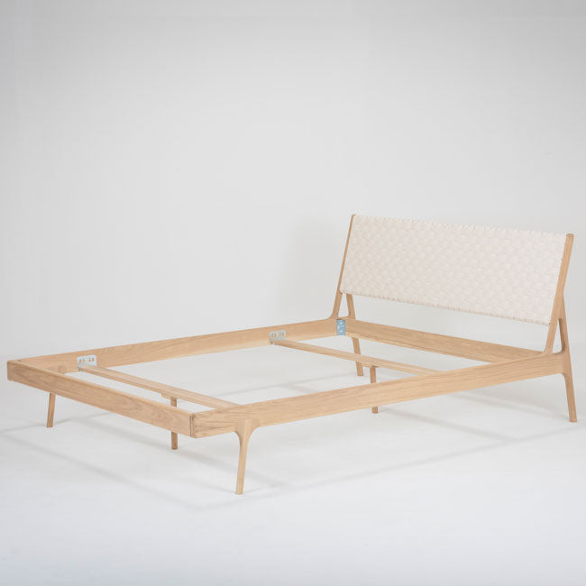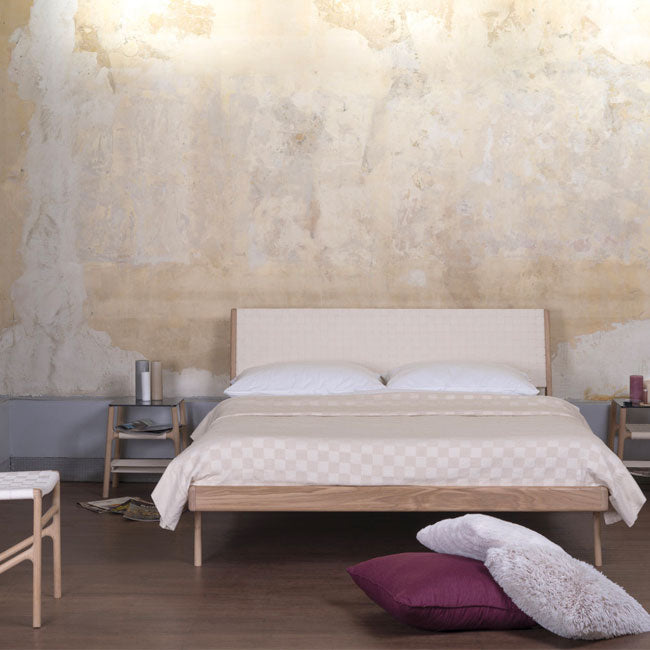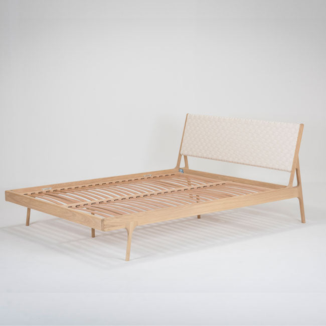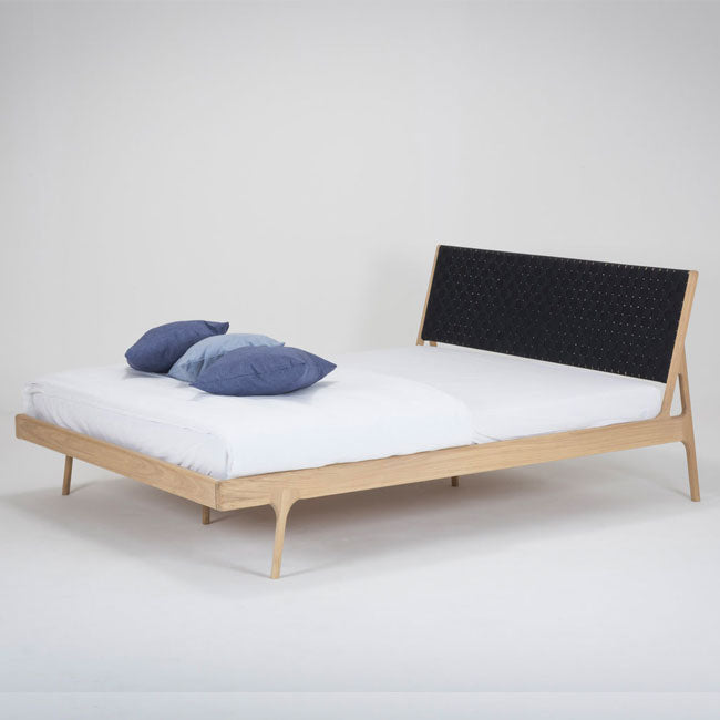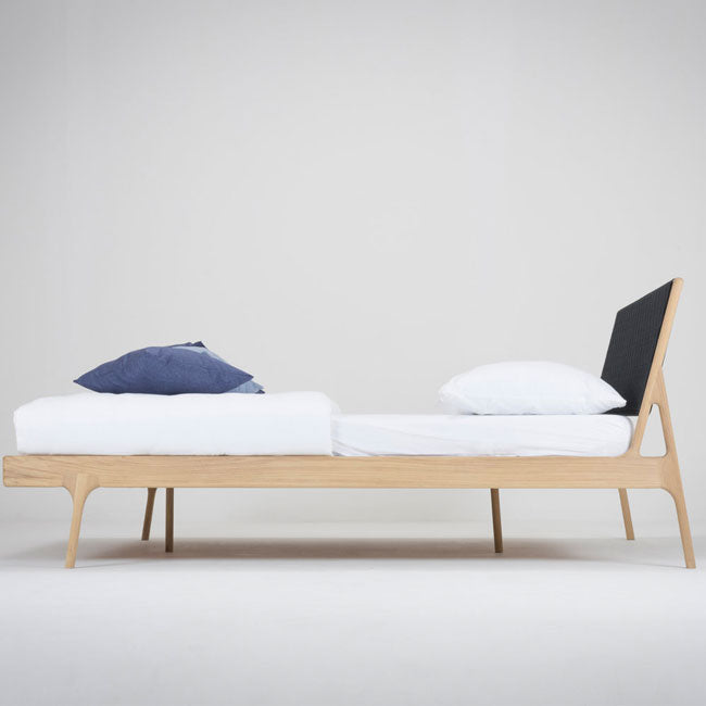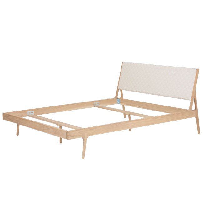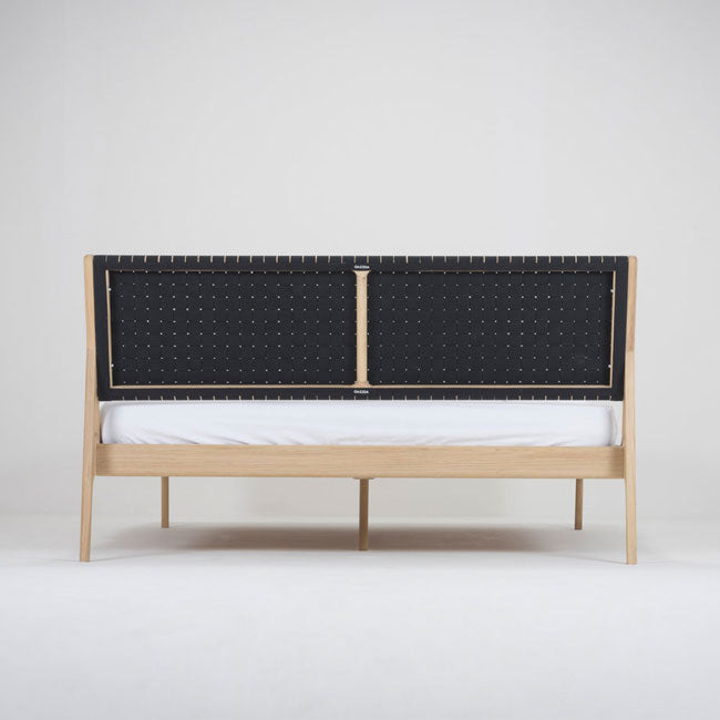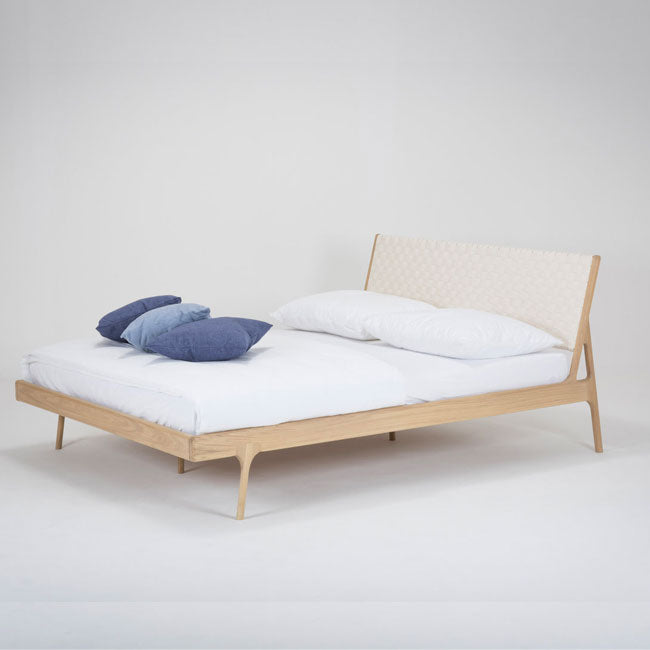 Sengerammen fra Gazzda har en enkel og minimalistisk design med et bomuldsvevet hovedgærde.
