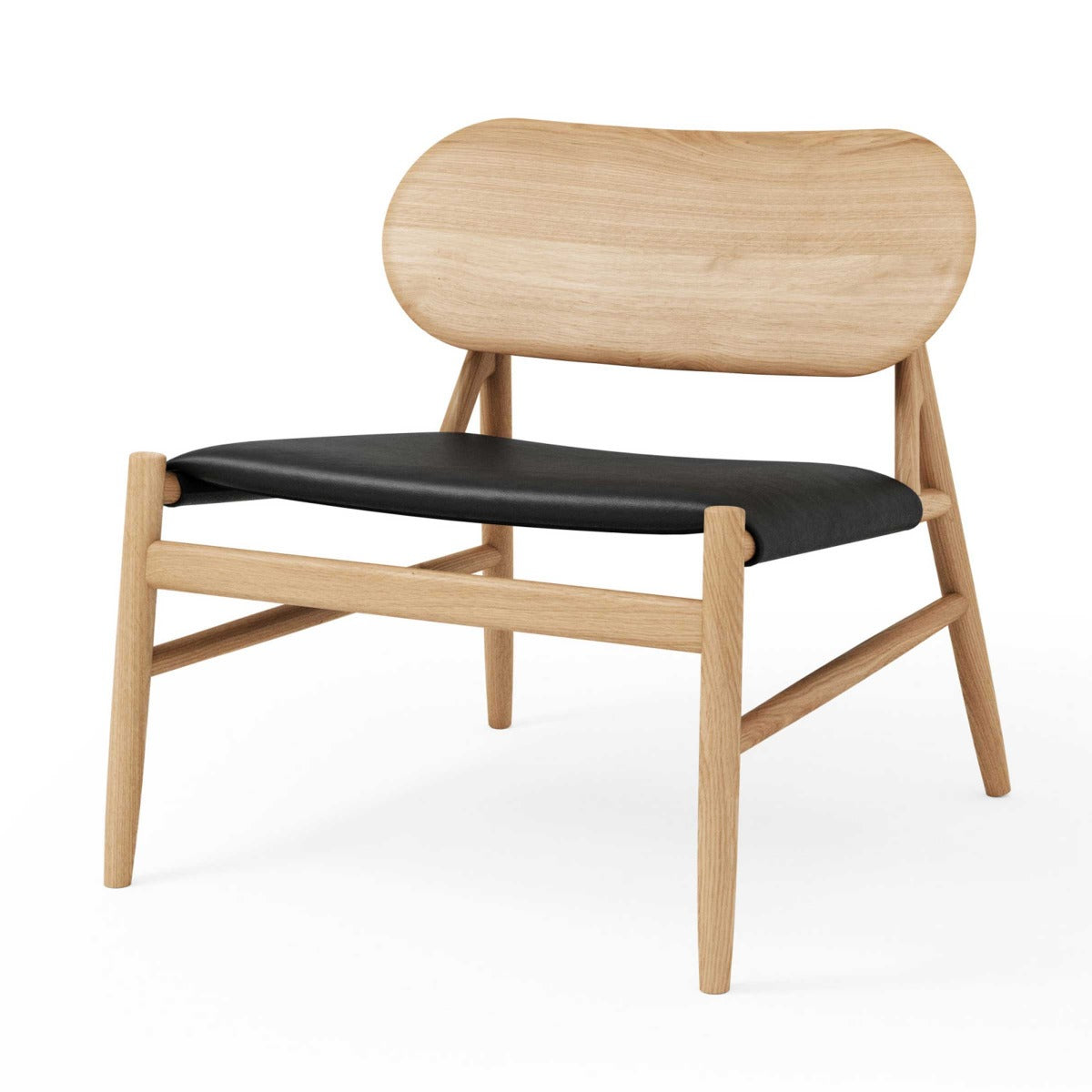 Ferdinand Lounge Chair fra Brdr. Krüger er her ed sæde i sort læder. Det er også muligt at få lænestolen bestrukket med stof. Ferdinand fås ligeledes sæbebehandlet eller sortbejdset.