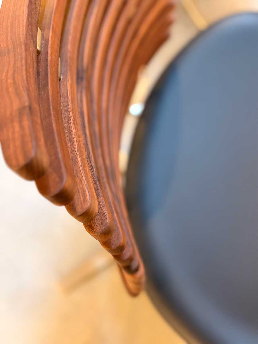 Materialer: Stel i rustfrit stål; Sæde i sort læder, ryg i valnøddetræ