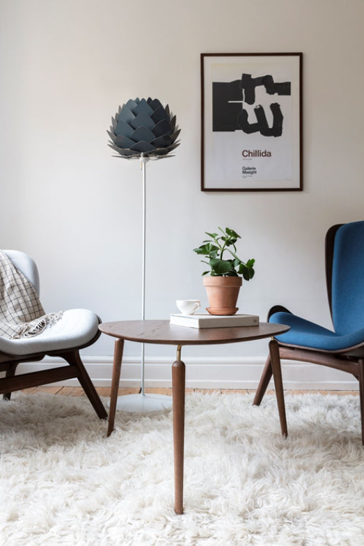 Det smukke sofabord Hang Out fra Umage har et smukt organisk udtryk med sin asymmetriske bordplade. Bordpladen er monteret med fine messingbeslag, der elegant løfter bordpladen fra den tre bordben i massiv eg. Under bordet finder du en praktisk lomme i kunstlæder, der er perfekt til at opbevare fjernbetjeninger, strikketøj eller anden du sidder og sysler med i stuen.