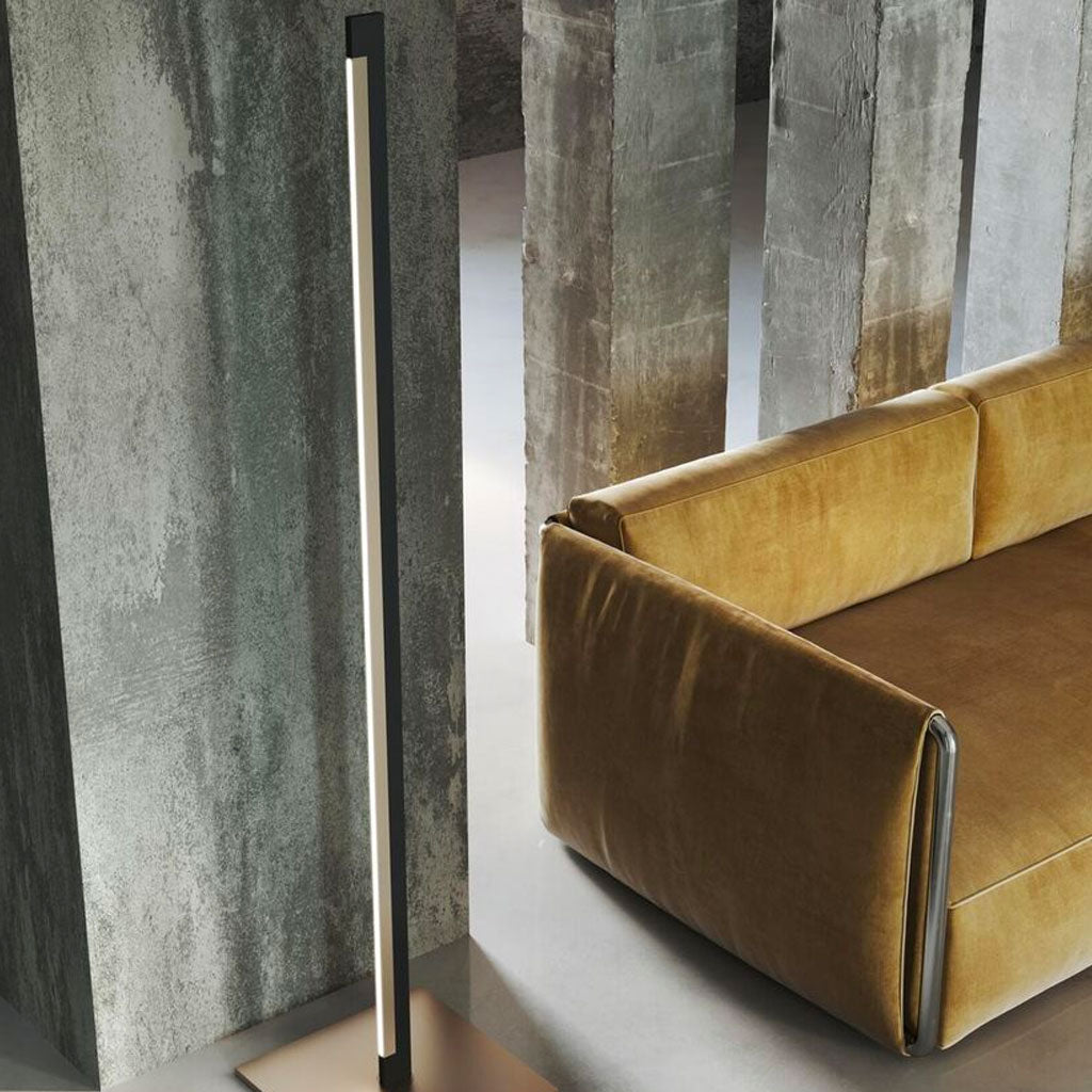 Gulvlampen INLAY F1 er som en fin streg. Designet er baseret på ét kerneprincip – en lige linje – som er selve essensen af lampen. INLAYs lineære form kaster et jævnt lys i hele lampens længde. Lampen tændes og slukkes med en touch sensor, som også bruges til at kontrollere lysets styrke. Den er udstyret med Switch Tune, som giver dig mulighed for at vælge mellem 2700K og 3000K.