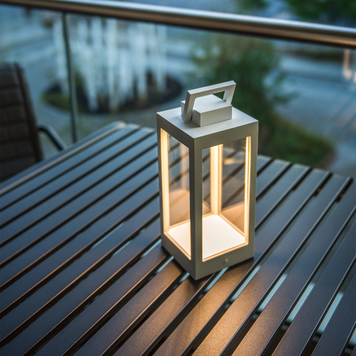 Lantern Table leveres inklusiv et genopladeligt indbygget Lithium ion batteri og en tilhørende oplader.
