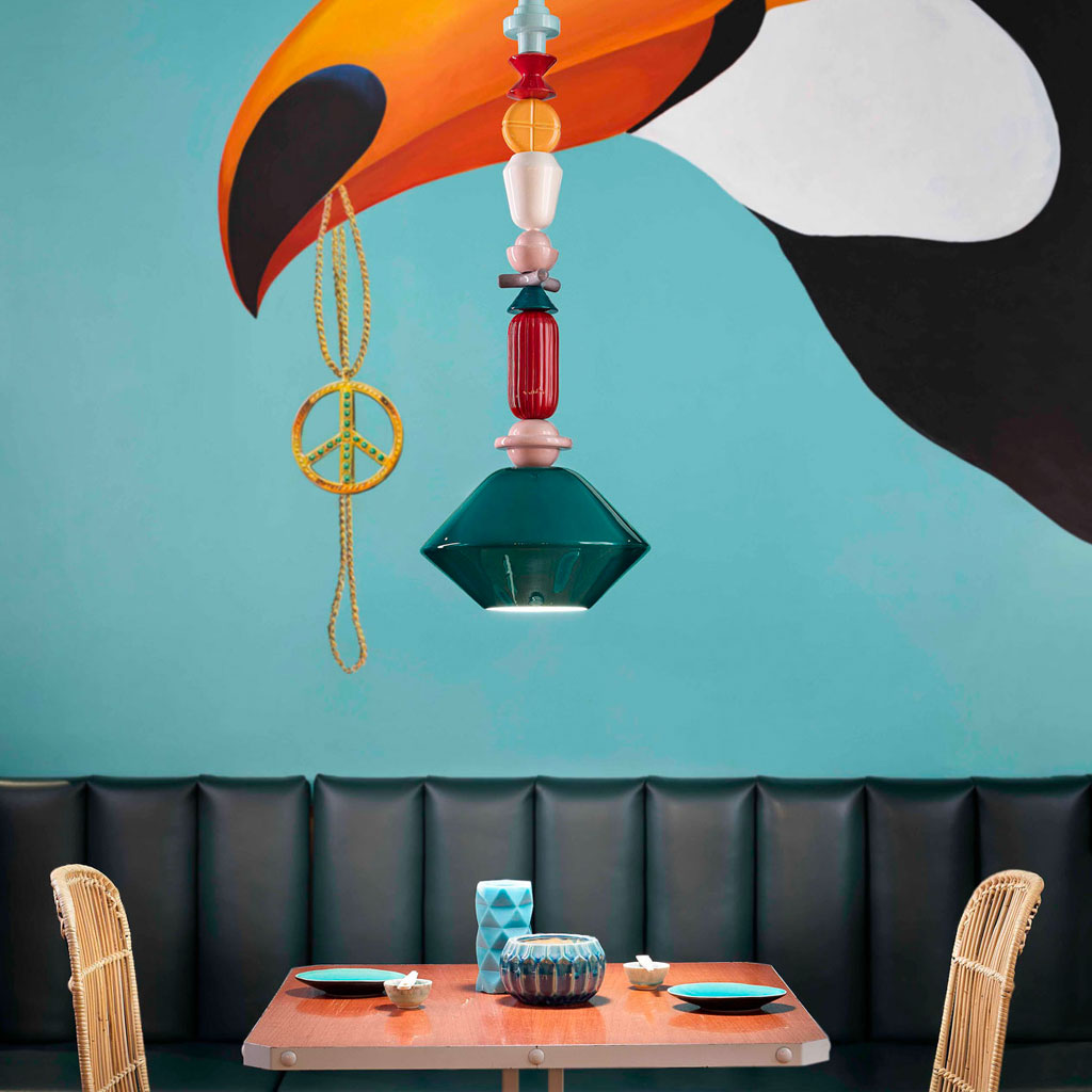 Forkæl dit hjem med Ferroluce Lariat C2512, en pendel fra Decò‑serien, der vækker associationer til et elegant smykke med sine keramiske, farverige ‘perler’ arrangeret i en vertikal, grafisk kæde. Designet af Giorgio Biscaro, bærer lampen præg af italiensk æstetik — hver enkelt keramisk form er håndlavet og glaseret i levende farver, mens helheden fremstår både dristig og raffineret. Når lyset tændes, skabes en varm og indbydende atmosfære, perfekt til stuen, over spisebordet eller i entréen.