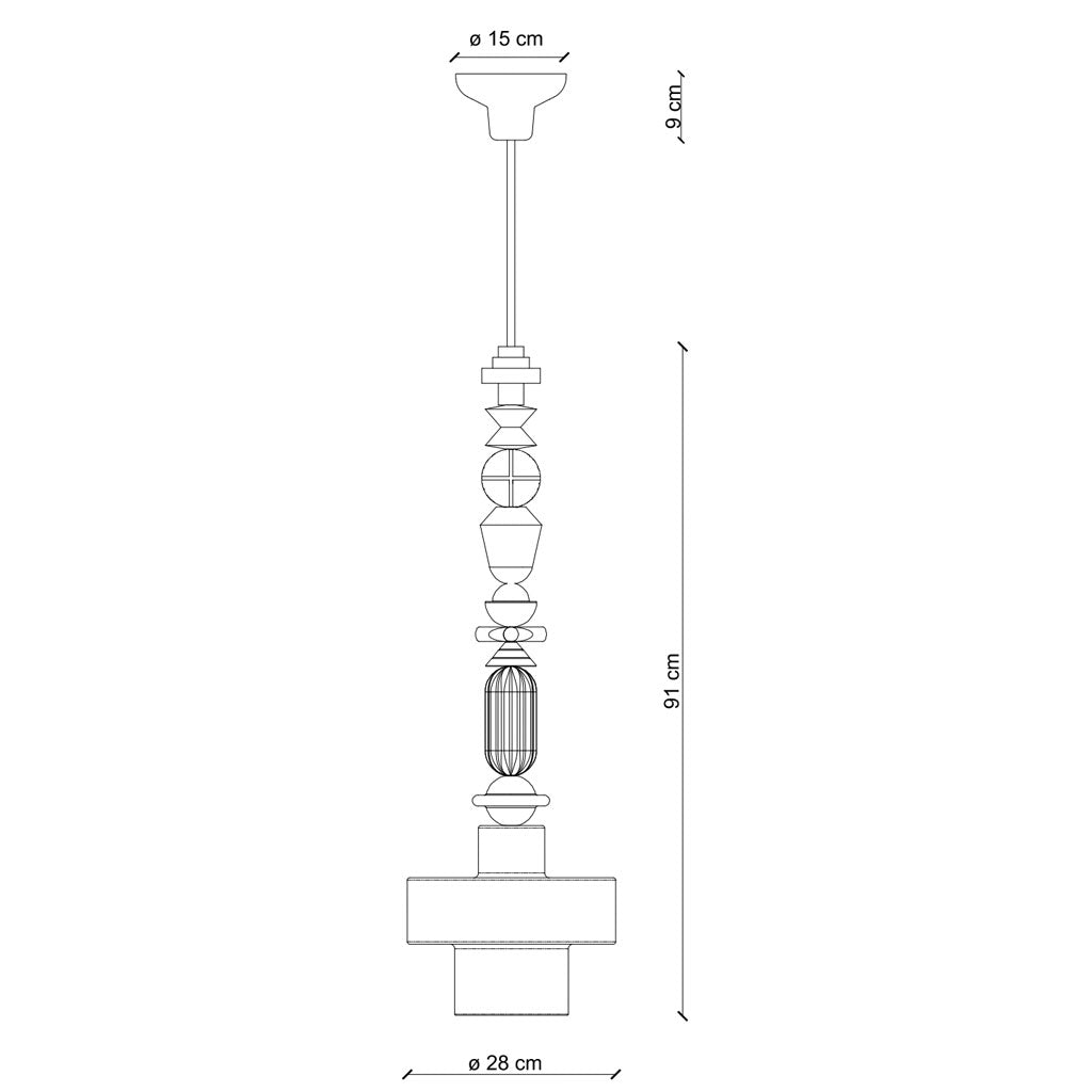 Løft din indretning med Ferroluce Lariat C2532, en lang, dekorativ pendel, der forener traditionelt italiensk håndværk med moderne, kunstnerisk udtryk. Som en elegant perlekæde glider keramiske elementer i forskellige geometriske former og farver nedad i en vertikal række, der kulminerer i lampens centrale lyskilde. Lampen udsender et varmt, blødt lys, som skaber hygge og stemning – perfekt over spisebordet, i stuen eller i entréen.