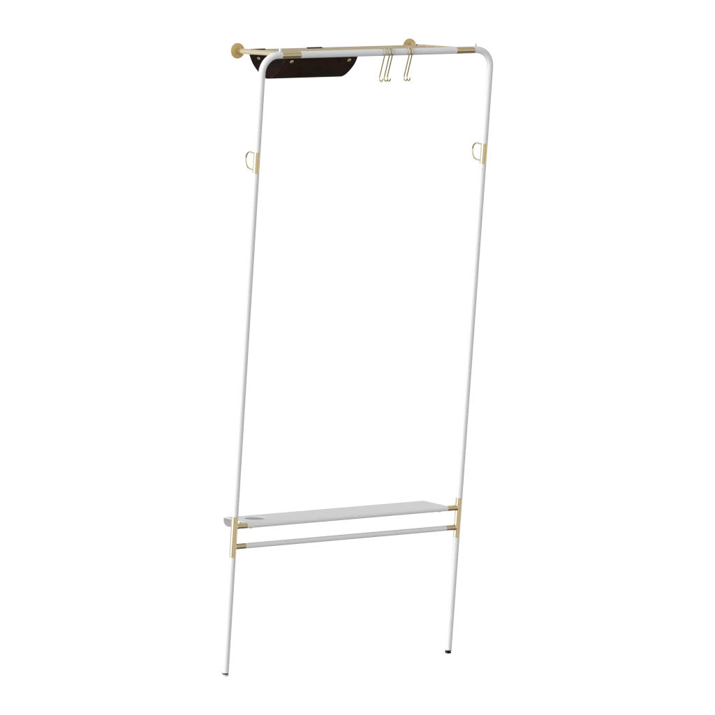 Lean On Me er et elegant og pladsbesparende tøjstativ, designet til at læne sig diskret op ad væggen. Det slanke og minimalistiske formsprog gør det ideelt til entréen eller andre steder, hvor der er behov for funktionel opbevaring uden at optage for meget gulvplads.
