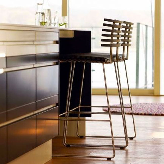 En videreudvikling af Leopard spisebordsstolen fra Naver collection designet af Henrik Lehm. Her som barstol. En af de få barstole med relativt meget ryg, som giver en framragende sidekomfort.