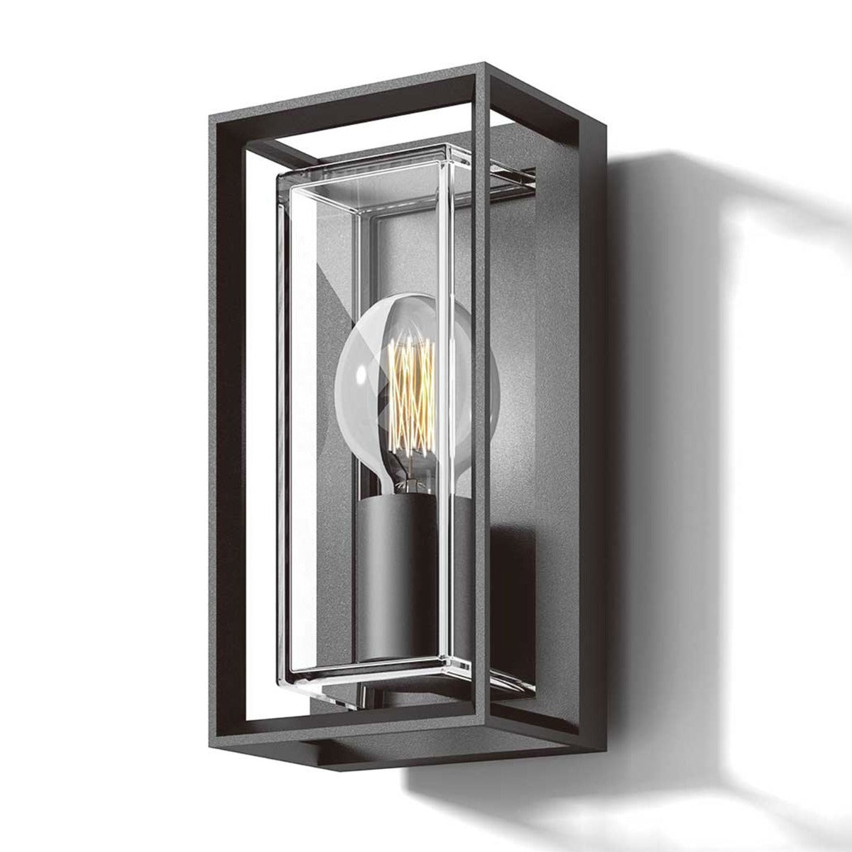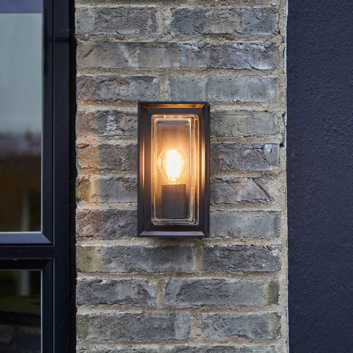 Loke IP65 fra Loom Design er en væglampe der udsender et godt lys, og det rustikke design passer perfekt på alle fassader eller badeværelser. Lampens rektangulære form gør looket skarpt, og det gennemsigtige borosilikatglas, giver frit indkig til lyskilden. Det sorte trykstøbte aluminium er en vellykket kontrast til det klare glas.