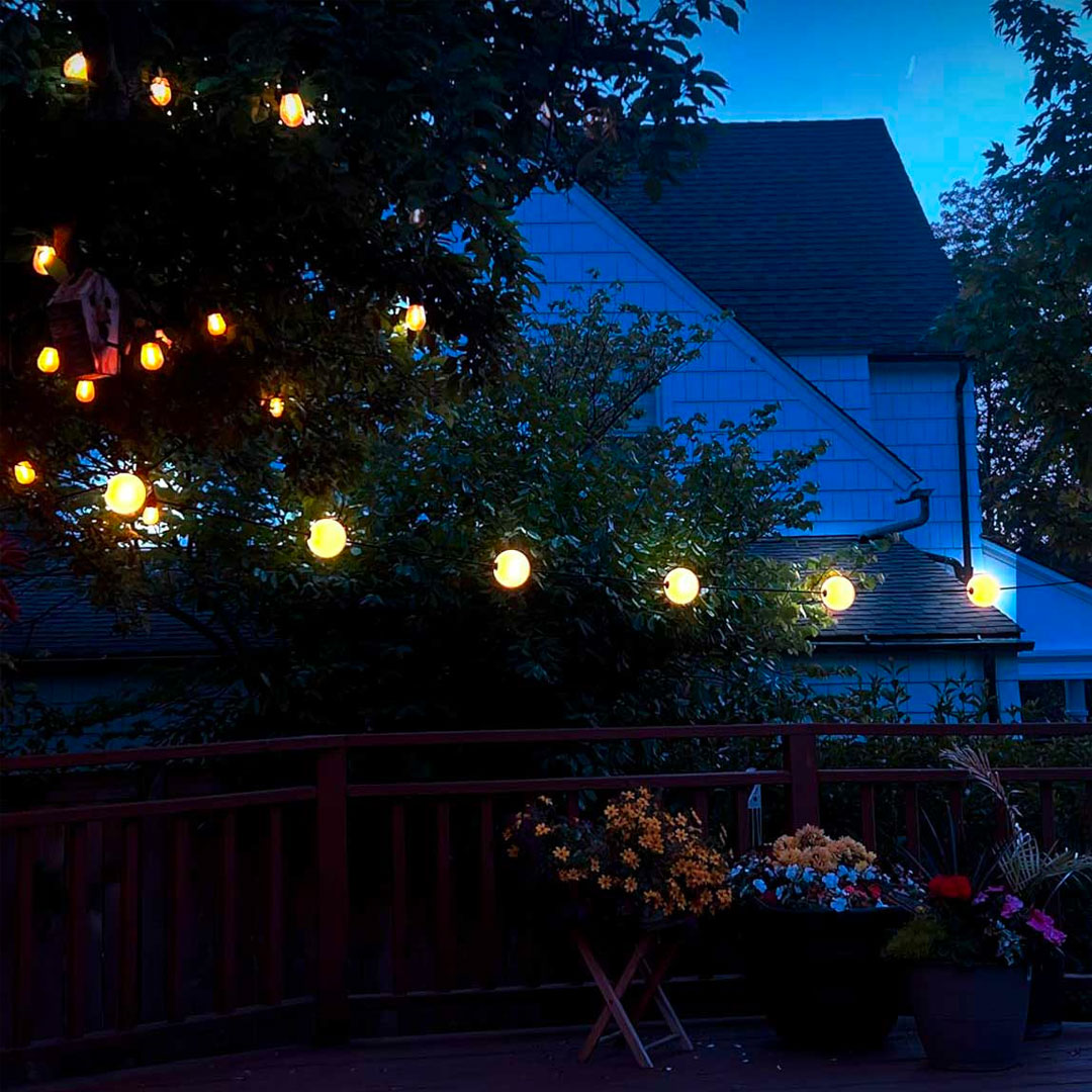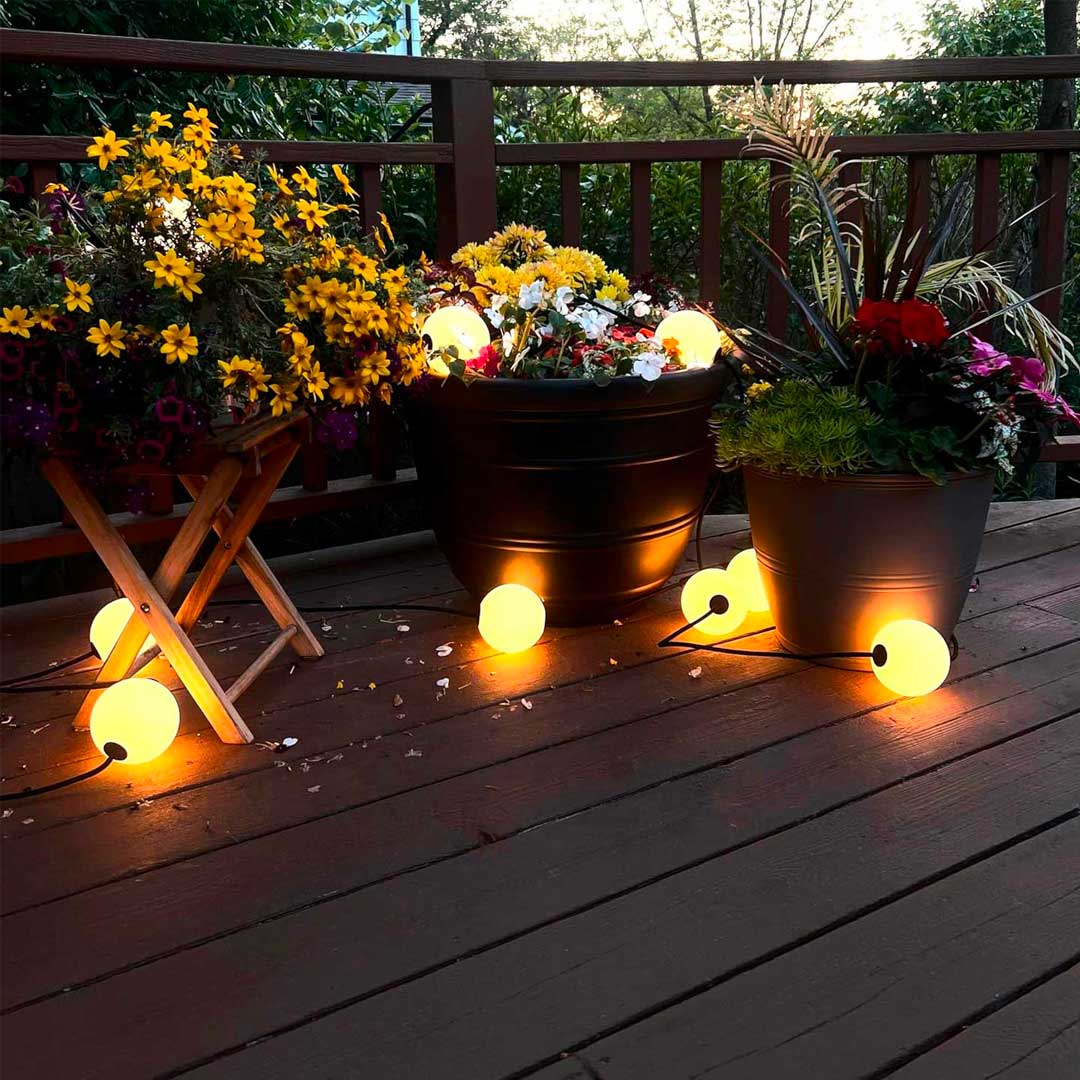 MISS Garland 20 er en dekorativ lyskæde med 20 runde lamper (Ø10 cm) og en imponerende længde på 1434 cm, der skaber en smuk og stemningsfuld belysning. Med sin IP67-klassificering er lyskæden ideel til både indendørs og udendørs brug – og kan endda placeres direkte i vand, hvilket gør den perfekt til pools, søer eller havemiljøer. De indbyggede LED-lyskilder udsender et varmt 2500K lys med en samlet lysstyrke på 20 x 80 lm, hvilket giver et blødt og indbydende skær.
