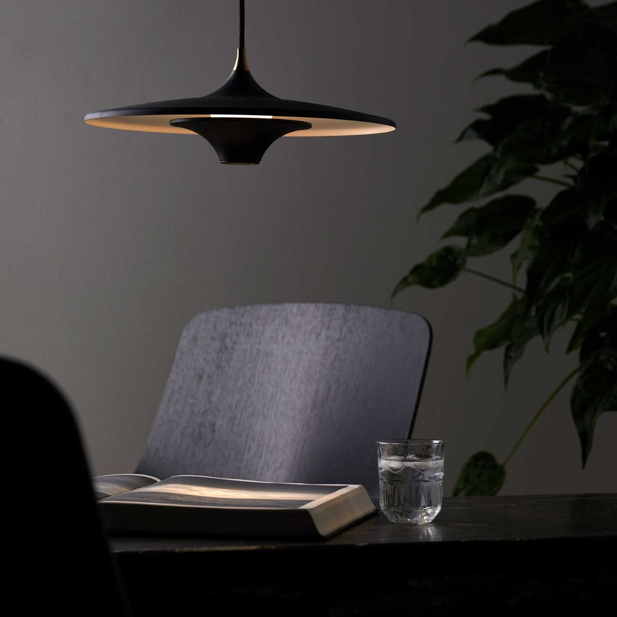 Moja 35 fra Loom Design er en elegant LED pendel i tidsløst design, der passer ind i stort set alle indretninger. Pendlen har en sort aluminiumsskærm med messing top og stofledning, samt indbygget LED lyskilder. Den udsender både direkte og indirekte belysning, samt skaber en særligt funktionel og behagelig atmosfære i boligen.