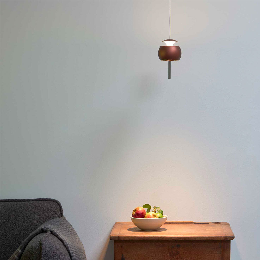 Parachute Coffee brown er en stilfuld pendellampe i aluminium med et smukt look i farven coffee brown. Til trods for sin lille, kompakte størrelse har pendlen meget at byde på. Parachute er først og fremmest smuk og iøjnefaldende – og tilgængelig i flere flotte farvevarianter. Men den er også alsidig med sin smarte udformning, der giver mulighed for at højdejustere pendlen op til en maks. længde på 180 cm – blot ved at trække i den.