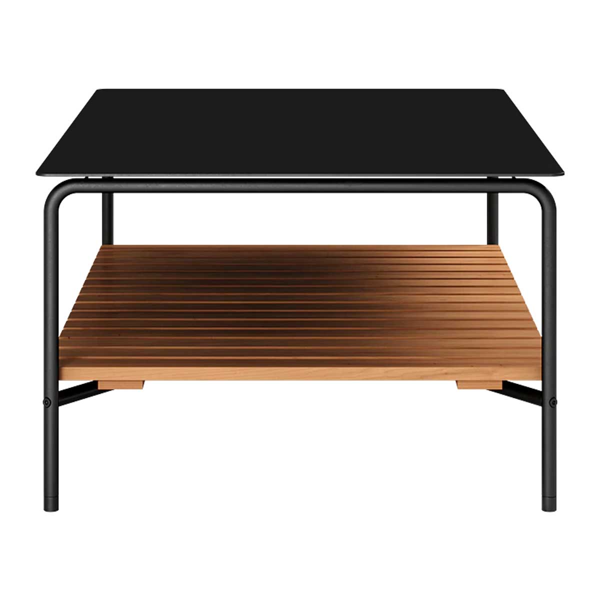 SACKit Patio sofabord er et udendørs sofabord i pulverlakeret aluminium med en hylde i teaktræ. Rene linjer, lækre materialer og et multifunktionelt design tager dit udendørsområde til et nye niveau. Saml familie eller venner til ren afslapning på de solrige sommerdage eller hyg dig i solskinsstrålerne en efterårsdag med en varm kop kaffe på bordet. Du kan have dit Patio sofabord stående ude i alt slags vejr – året rundt.