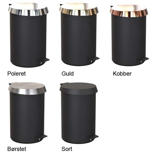 Pedalspanden er fremstillet i rustfrit stål med en sort pulverlakeret belægning. Låget fås i forskellige finish.