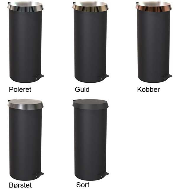 Pedalspanden er fremstillet i rustfrit stål med en sort pulverlakeret belægning. Låget fås i forskellige finish.
