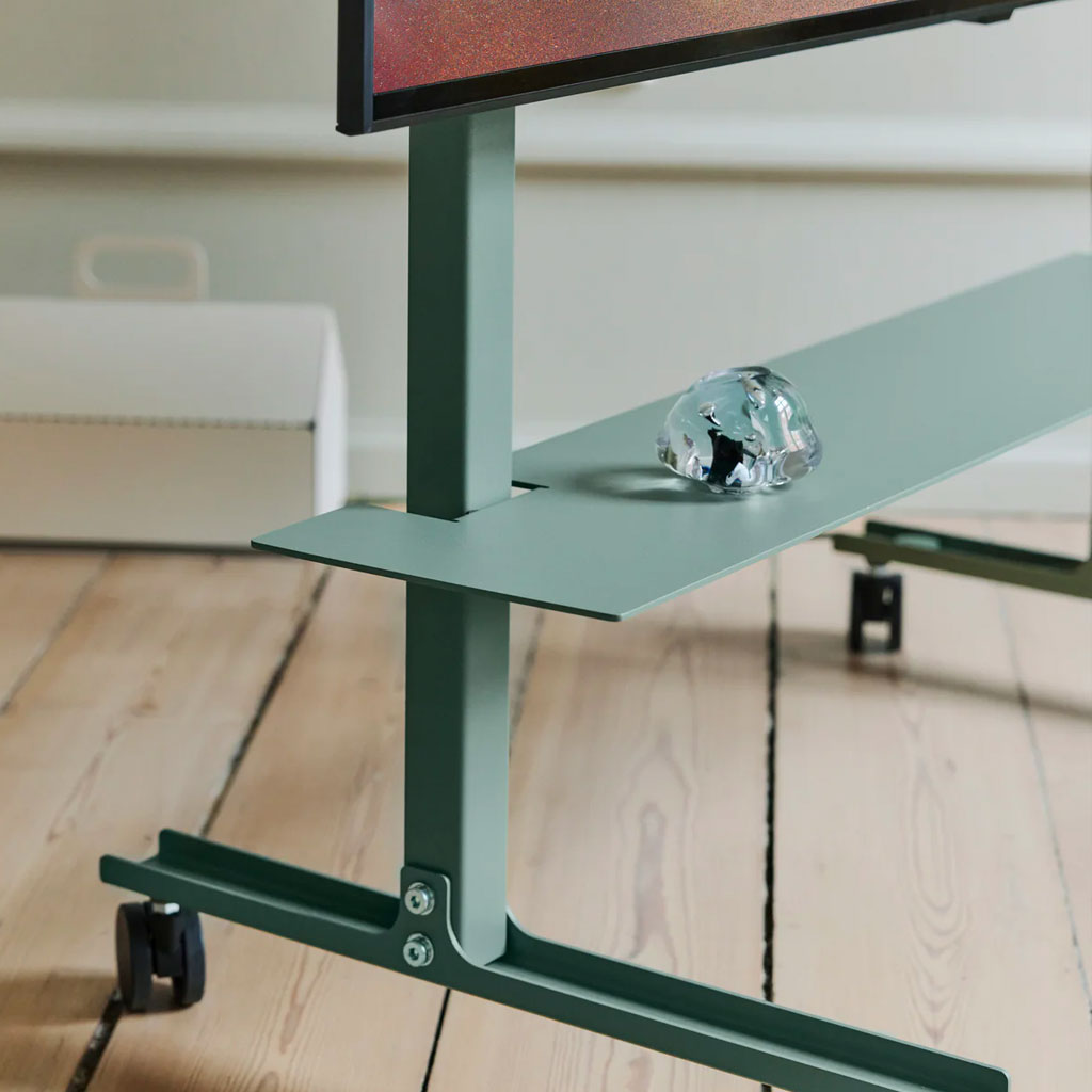 Shelf er en hylde designet til Straight Tall, Straight Rollin' og Bendy Tall. Hylden er lavet i massivt, pulverlakeret stål, som gør, at den går i ét med standerens udtryk.