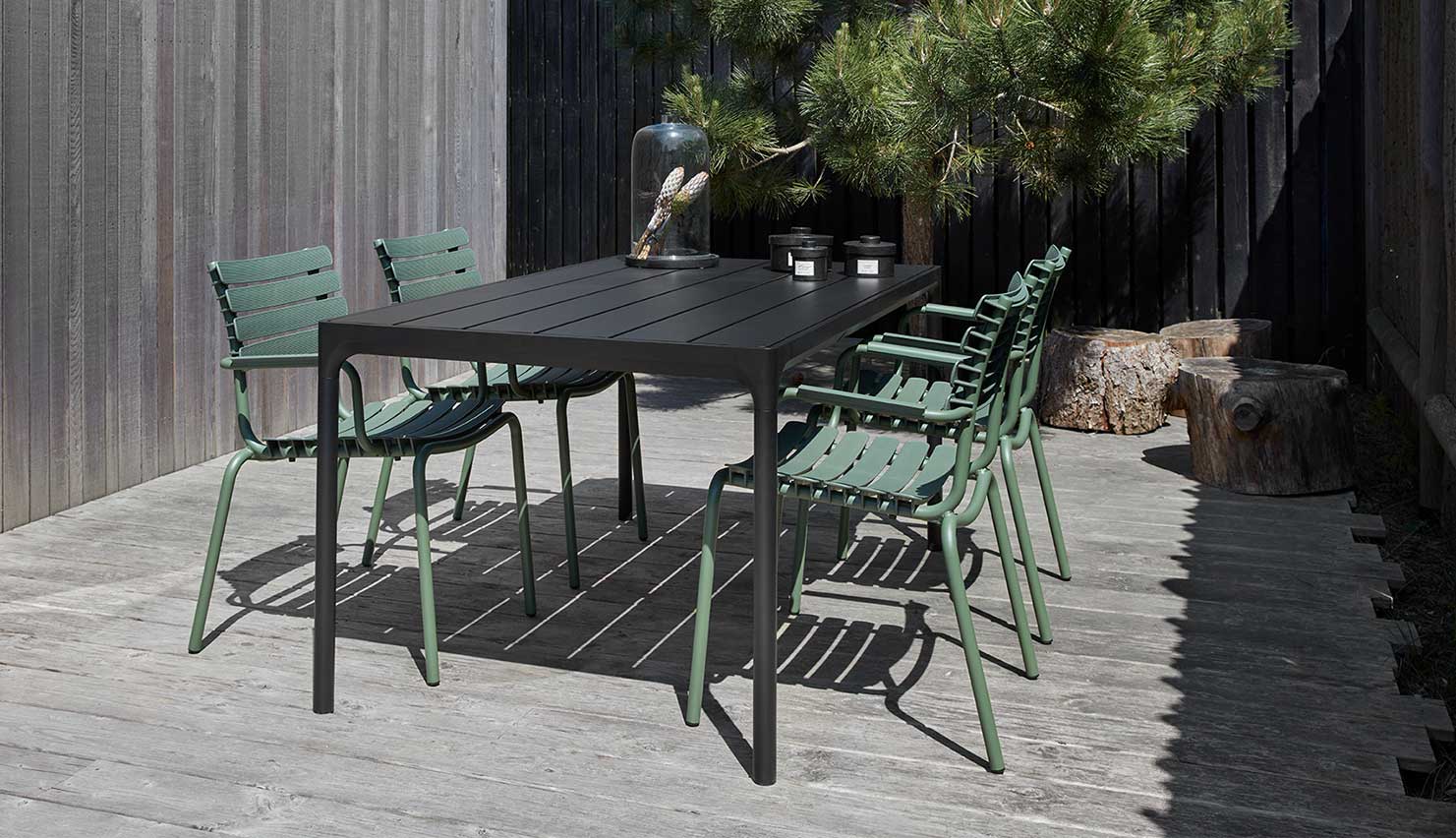 ReCLIPS er en serie af stole med brede plastiklameller klippet på en let pulverlakeret aluminiumsramme.