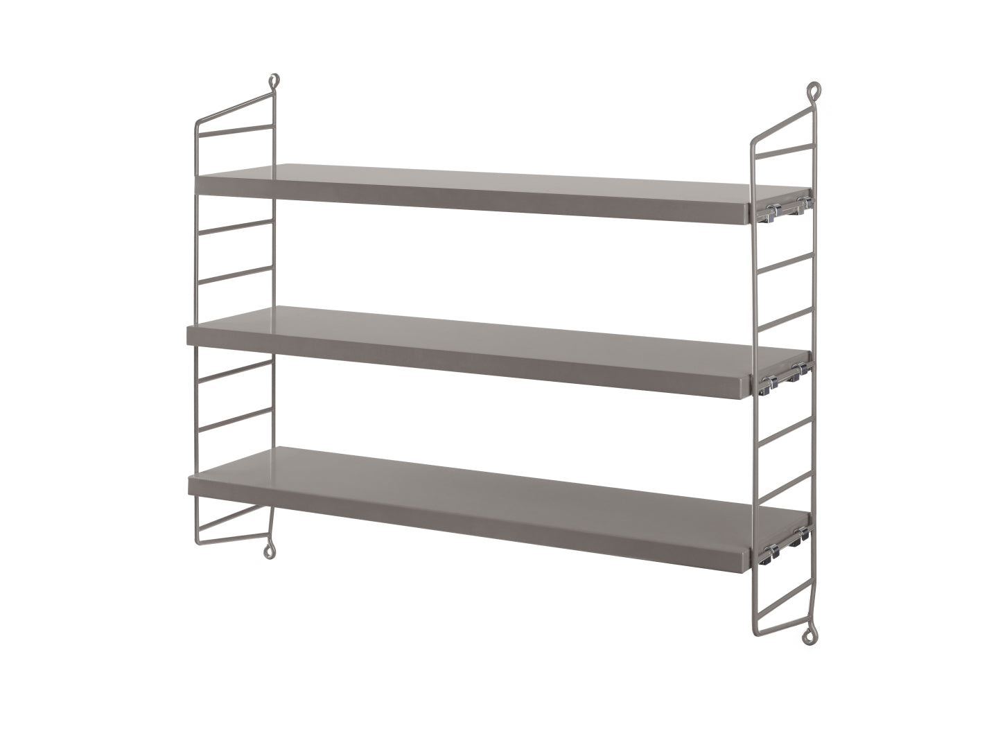 String Pocket er en enkelt lille, væghængt reolsystem der fås i flere farver. Her er String Pocket i grå men fås bl.a. også hvid, sort og i pink samt i flere andre farver.