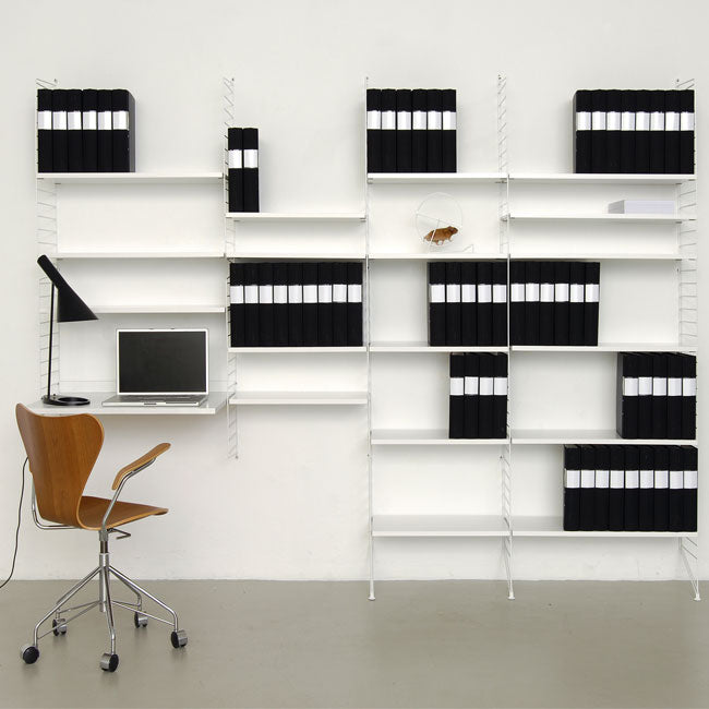 Reolsystemet har masser af afsætningsplads samt en arbejdsplade.