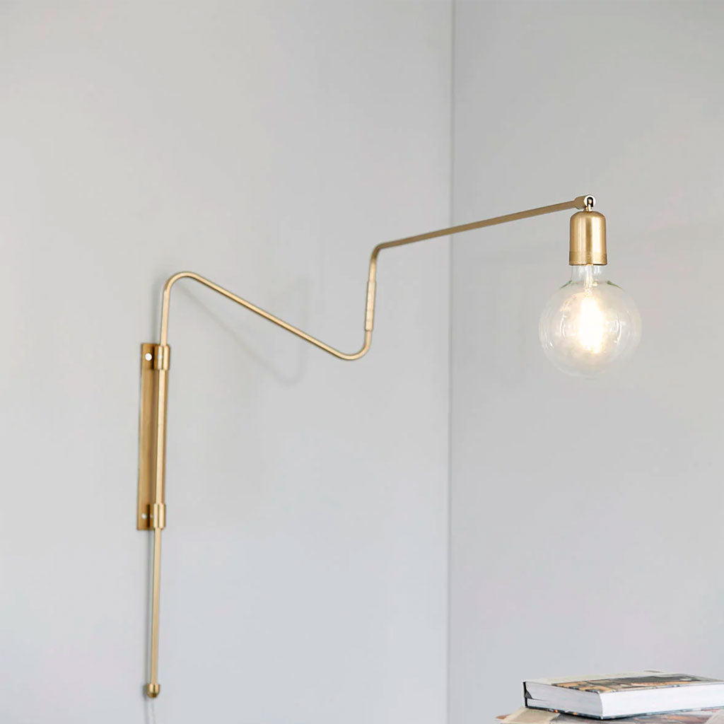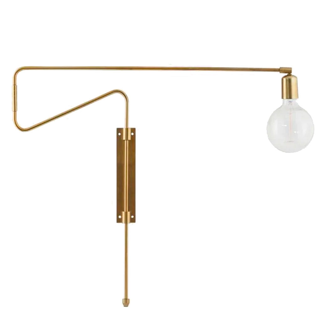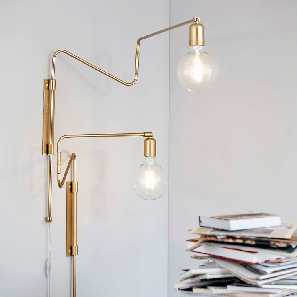 Swing fra House Doctor er en smuk væglampe med et innovativt og smukt look i messing. Væglampens lette form er skabt med asymmetriske og skæve linjer Det giver væglampen et dekorativt og spændende look. Lampen er lavet af messingbelagt jern.
