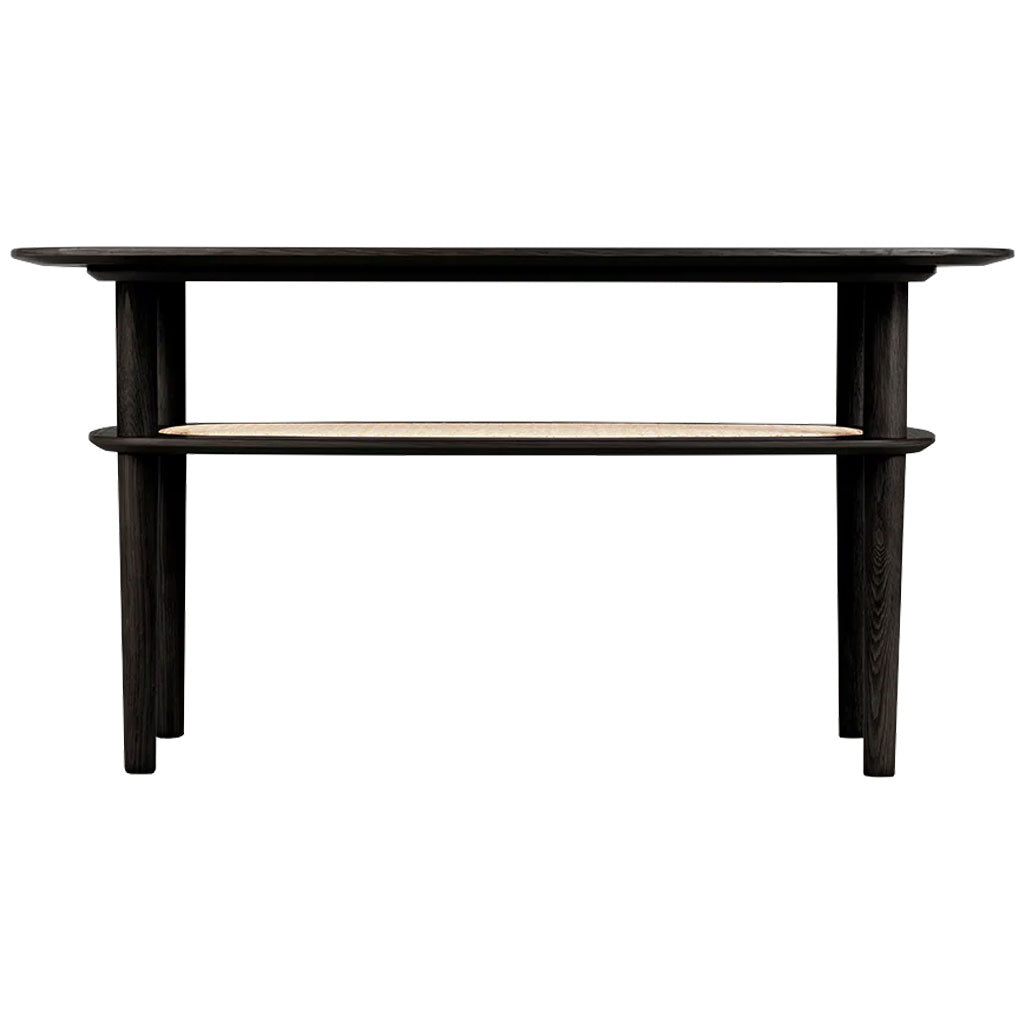 Together coffee table er fremstillet i egetræ med en hylde i fransk flet. De afrundede hjørner på bordet tilføjer et eksklusivt, men let udtryk til designet. Bordets ben er trukket ind under bordpladen – for både børnenes og dine tæers sikkerhed.