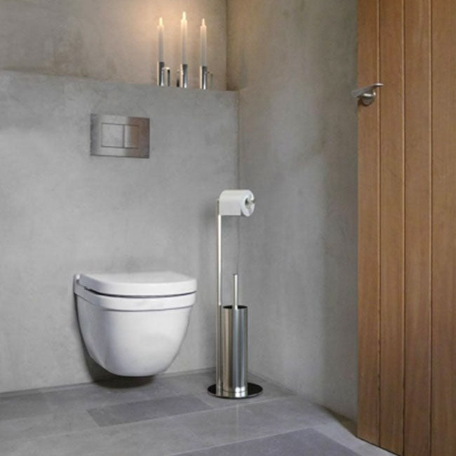 Frost Toiletbørste 8 er en kombineret toiletbørste og toiletrulleholder i et enkel og elegant deisgn.