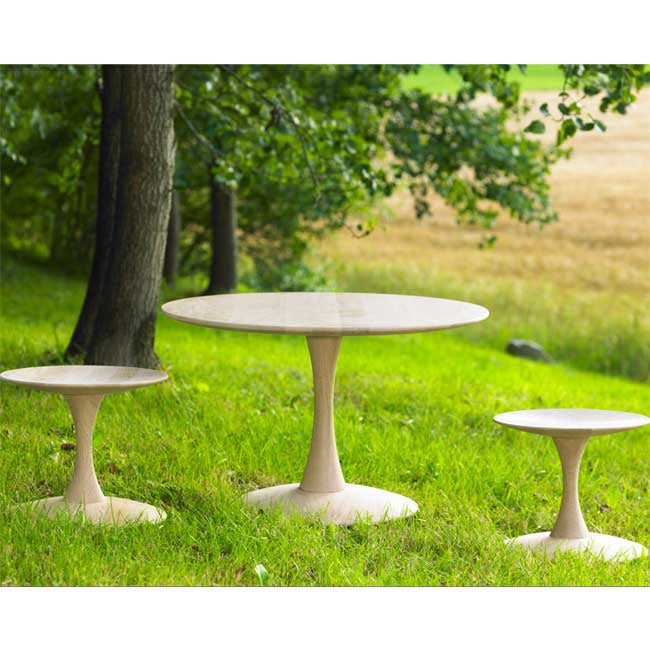 Trisse blev designet af Nanna Ditzel i 1962, og er blevet en af de helt store møbelklassikere. Den lille skammel blev oprindeligt designet som børnemøbel, men er også lavet som her som cafe bord.