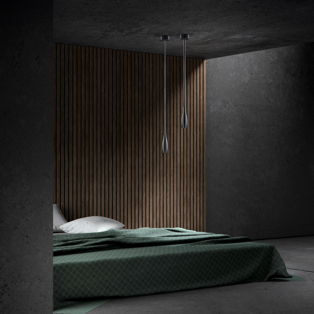 De opadstræbende linjer og afrundede former giver TULIP pendlen et elegant udtryk. Pendlen teleskopisk, hvilket betyder at den kan forlænges eller forkortes i længden (fra 1418mm til 968mm). Samtidig kan den roteres i forskellige retninger, 25o fra udhænget.