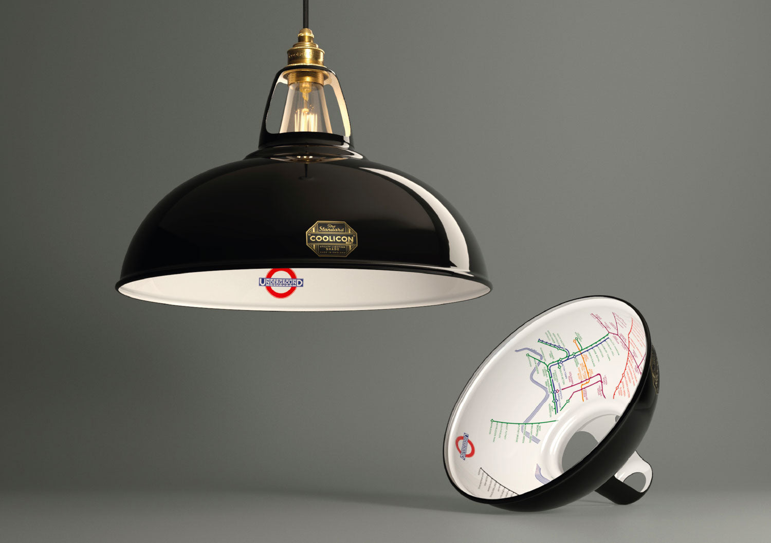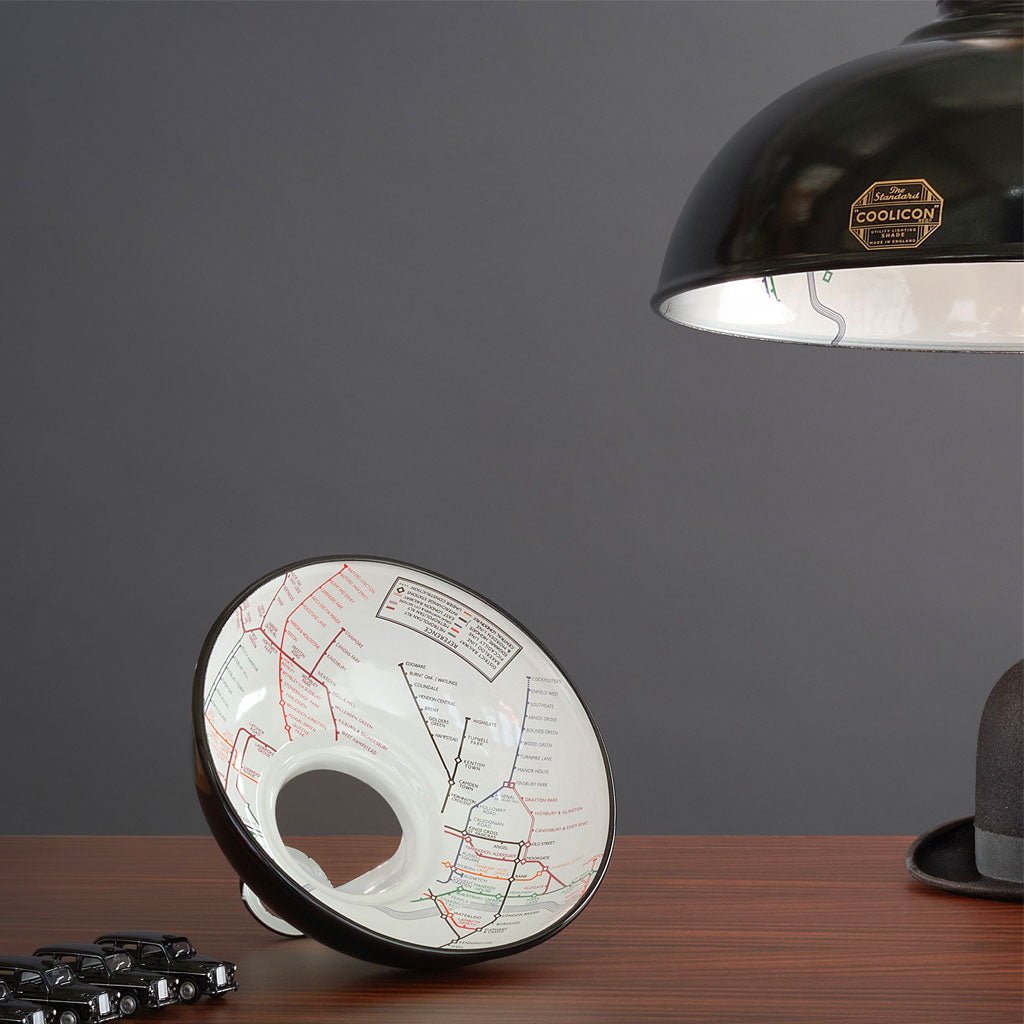 Coolicon pendlen har Londons undergrunds kort designet på indersiden af lampeskærmen, hvilket giver et dekorativt og anderledes udtryk.