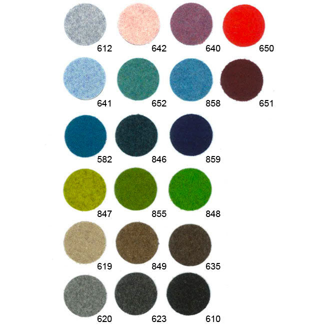 Vera lænestolen er her i stoffet Felt men fås også i andre stoftyper. På et af billederne er en oversigt over hvilke farver Felt stoffet fås i. Ud fra hver farve står en 3-cifret kode. Den kode indtaster du i feltet nedenfor.