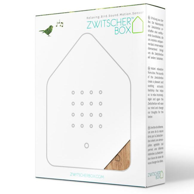 Uanset om du er hjemme eller på kontoret, på badeværelset eller i gangen, kan du placere din Zwitscherbox hvor som helst eller blot hænge den på væggen.